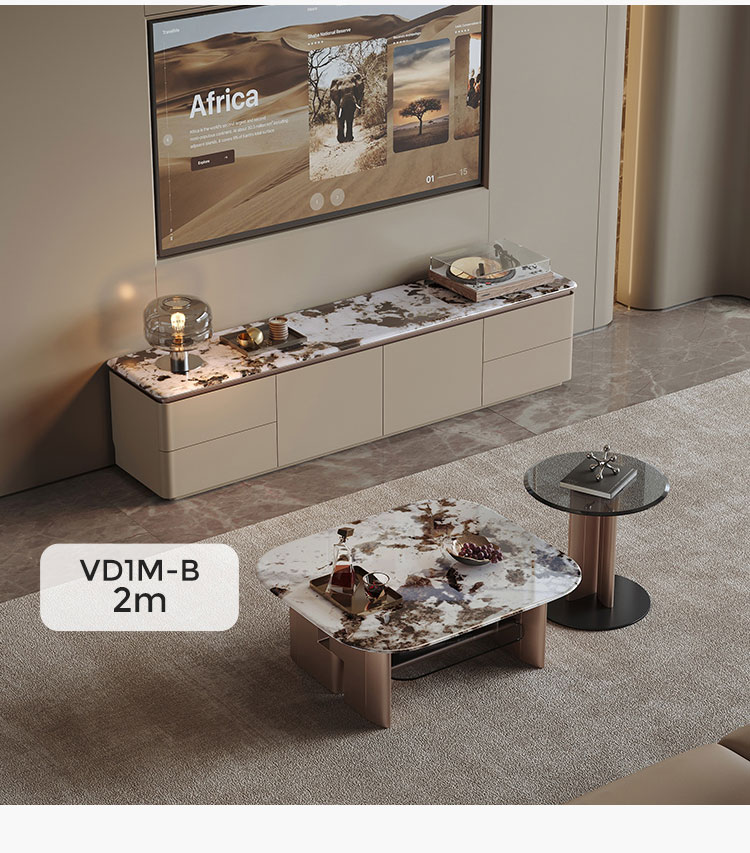 7מעמד טלוויזיה באורך 2 מטר עם משטח שיש ומגירות מרובות VD1M-B