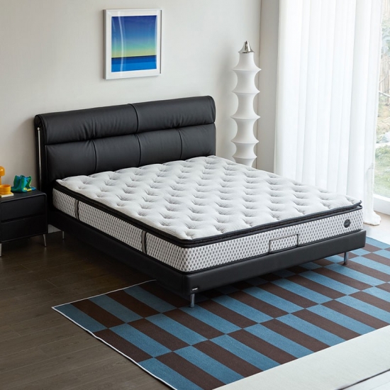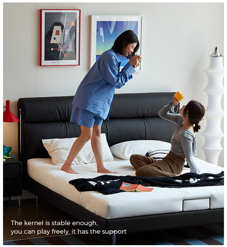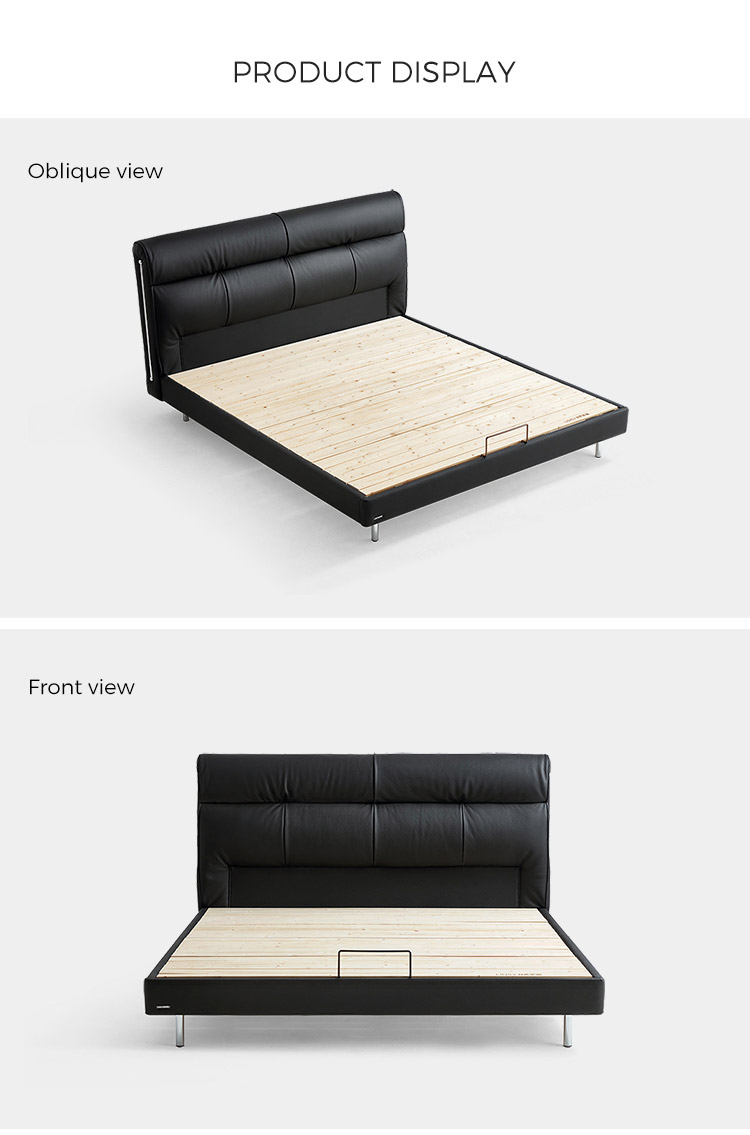 7מיטת עור רכה בצבע שחור עם רגלי עץ PC580-A