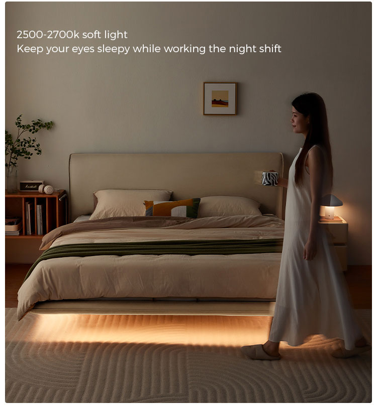רעננו את חדר השינה שלכם עם מיטת LED צפה שלנו, יצירת מופת מודרנית המשלבת עיצוב אלגנטי ואווירה סוחפת. מסגרת המיטה כוללת פס תאורת LED נסתר המטיל זוהר רך וניתן להתאמה אישית, ויוצר אפקט "צף" עתידני. מושלם לזוגות, העיצוב הכפול המרווח מבטיח נוחות, בעוד התאורה החסכונית באנרגיה יוצרת את האווירה להרפיה או רומנטיקה.