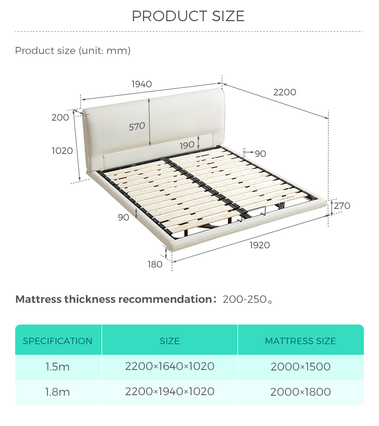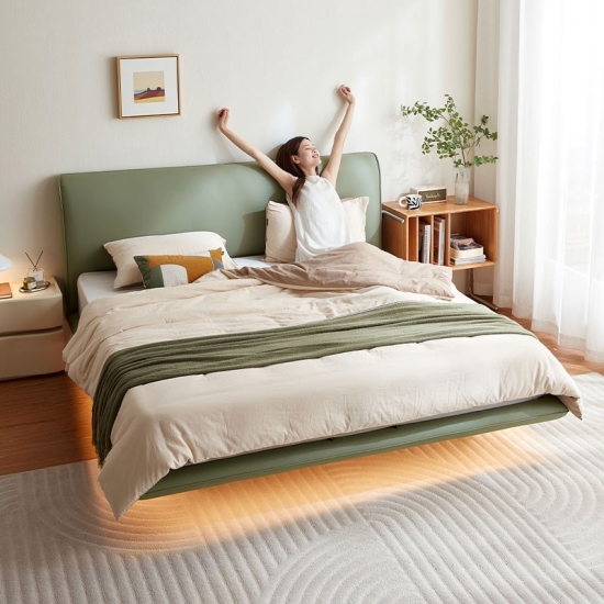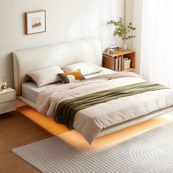 01. עיצוב צף ואלגנטי - מסגרת נמוכה עם תאורת LED נסתרת לאסתטיקה קלה למשקל.