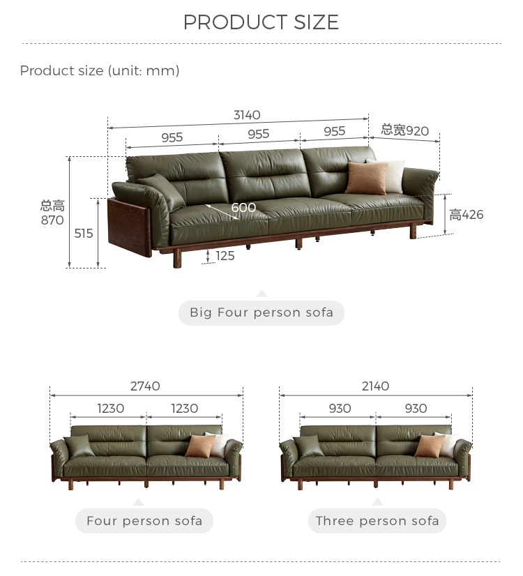 שם המוצר | ספה בצבע ירוק כהה בית מלון שימוש בעור ספה LH122K3-B |