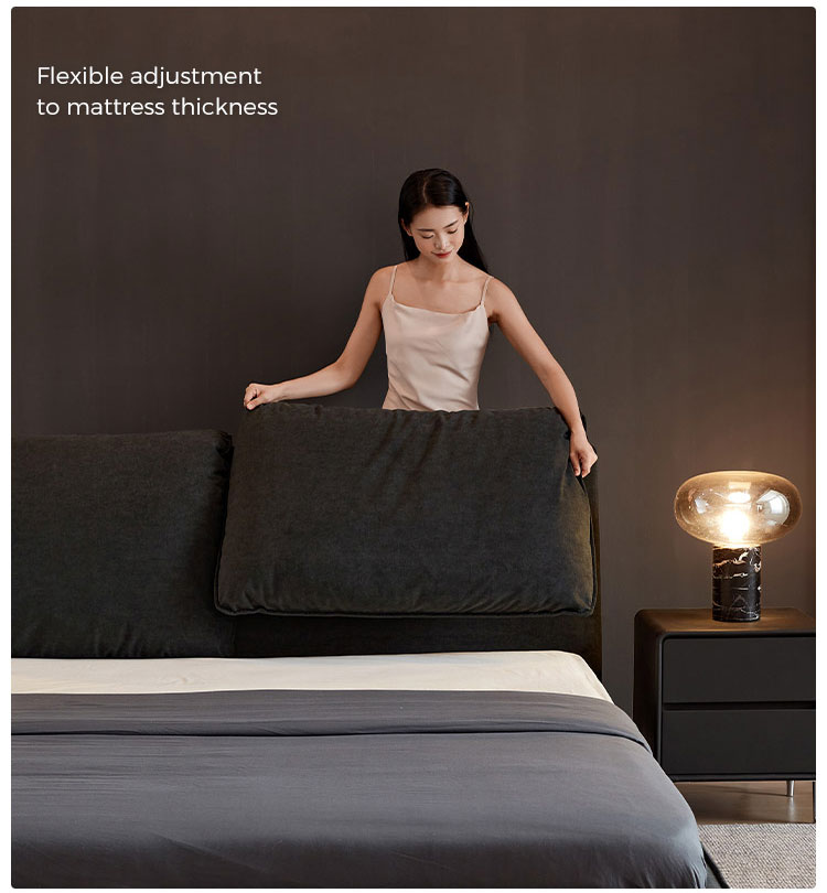 המאפיין הבולט הוא ריפוד הבד בצורת ציפורני חתול. זהו חומר סינתטי בצפיפות גבוהה, הארוג בטכניקה מיוחדת כדי להיות עמיד בפני שחיקה, שריטות ונוזלים. אל תתנו לשם העדין להטעות אתכם; בד זה תוכנן לעמוד בבלאי, מה שהופך אותו לבחירה מצוינת עבור בית תוסס עם חיות מחמד או ילדים. המגע הרך, דמוי הזמש, של צבע החול-בז' מביא תחושה של חמימות ושלווה לחדר השינה שלכם.