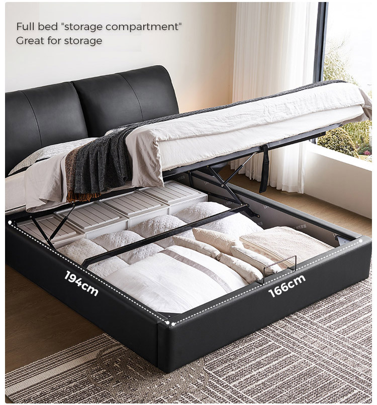 מיטת אחסון פנאומטית מעור אמיתי לשימוש ביתי ומלונאי PC109-A |