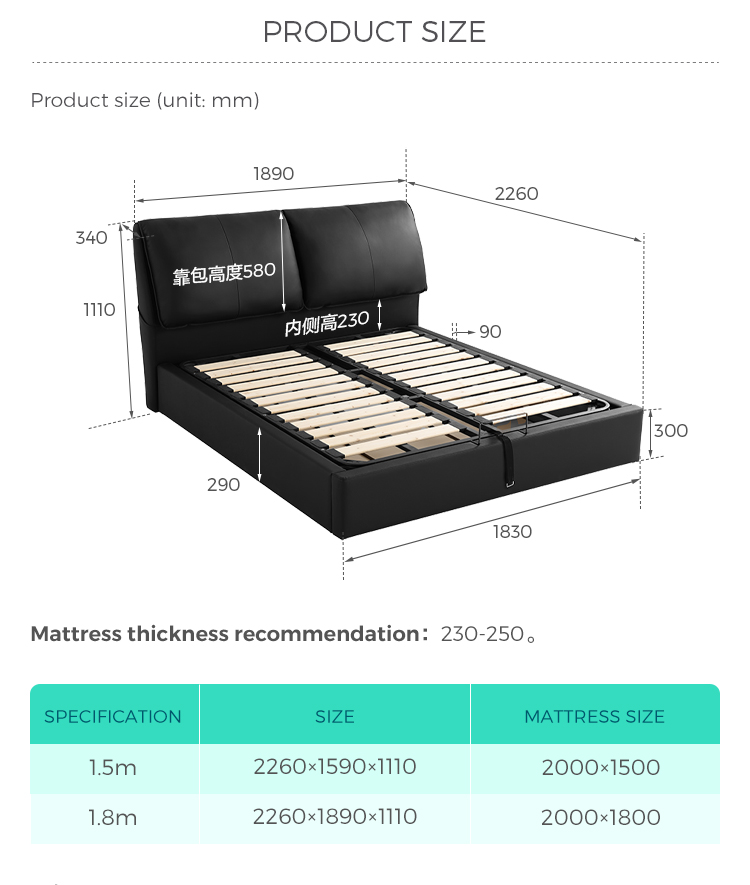 7מיטת אחסון פנאומטית מעור אמיתי לשימוש ביתי ומלונאי PC109-A