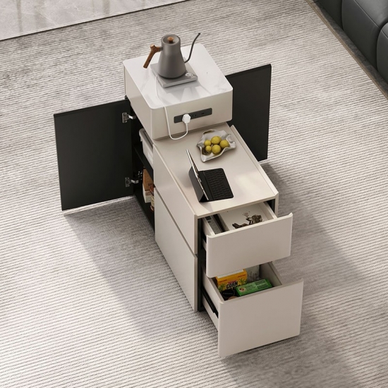 מעמד טלוויזיה לבן אופנתי LINSY עם שפע של אחסון RI4M-Eהַבָּא :