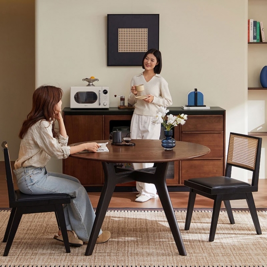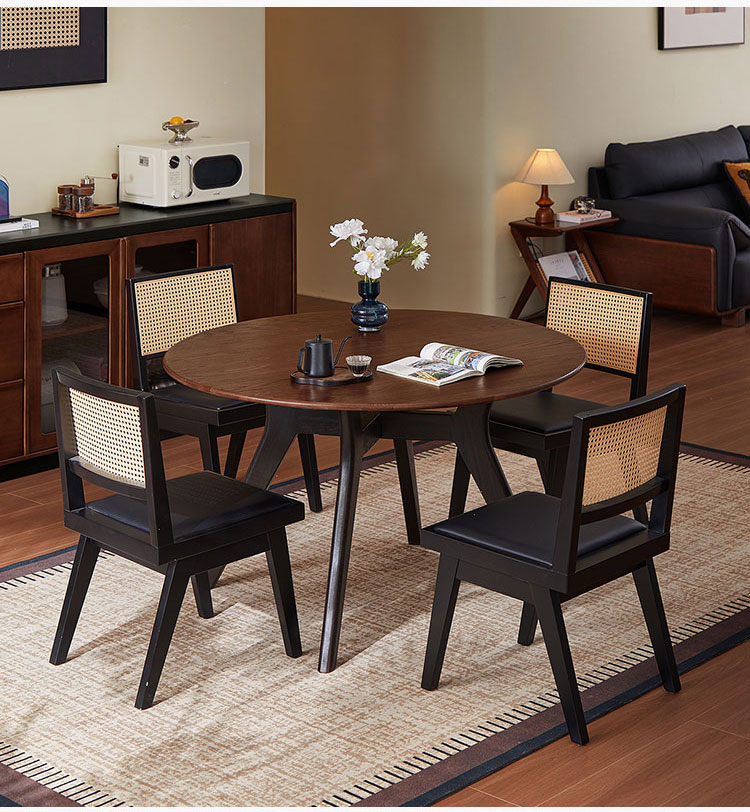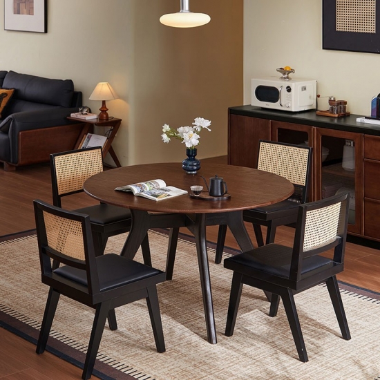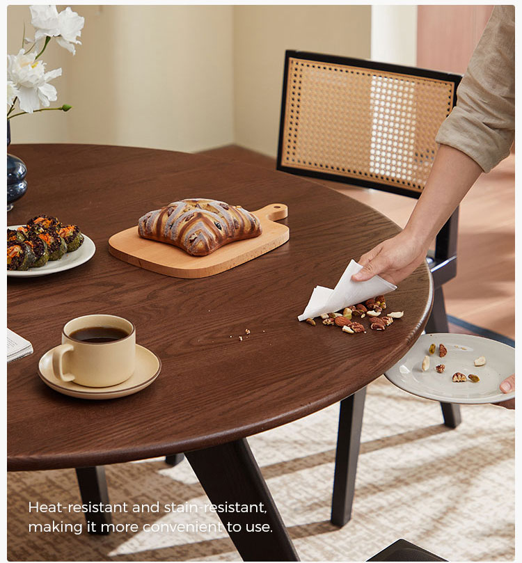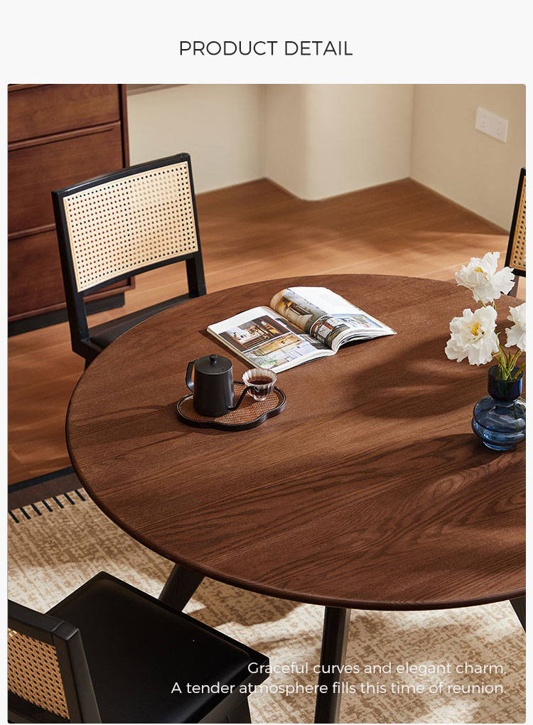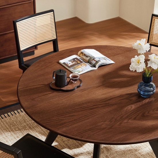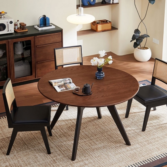 שולחן אוכל עגול מעץ מלא בצבע חום LH586R2-B |