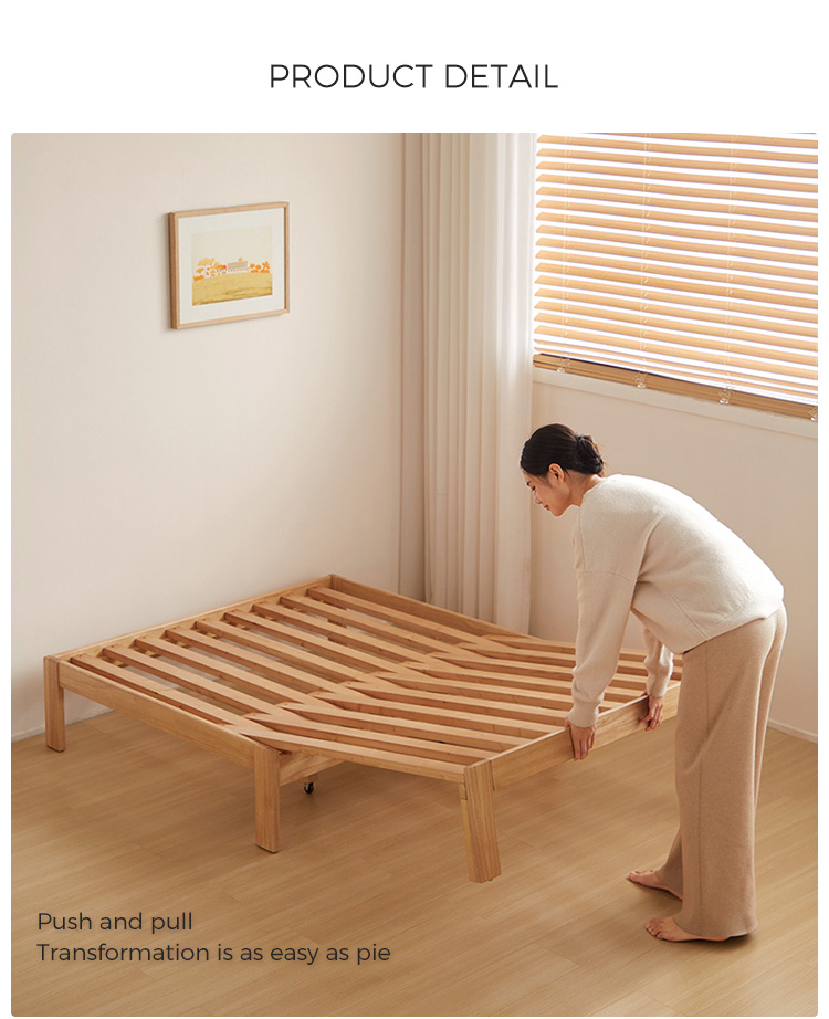המיטה המתרחבת שלנו, העשויה מעץ מלא איכותי, מציעה פתרונות שינה מגוונים הודות לעיצוב המתכוונן החדשני שלה. מסגרת המיטה נפתחת בקלות כדי להתאים לצרכים הולכים וגדלים או לאורחים נוספים, ואז נפתחת כדי לחסוך מקום כאשר אינה בשימוש.