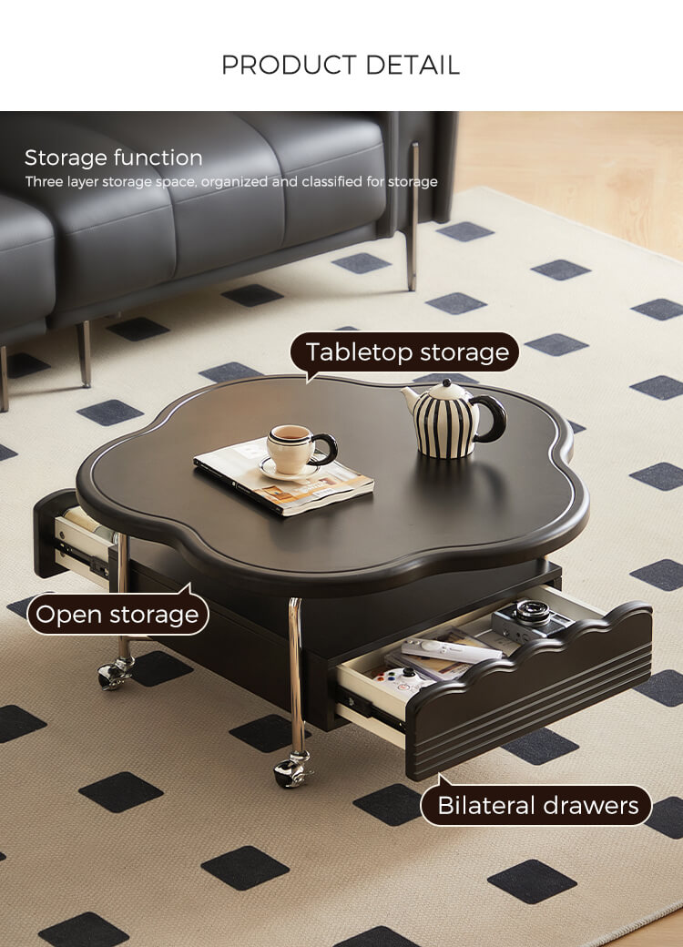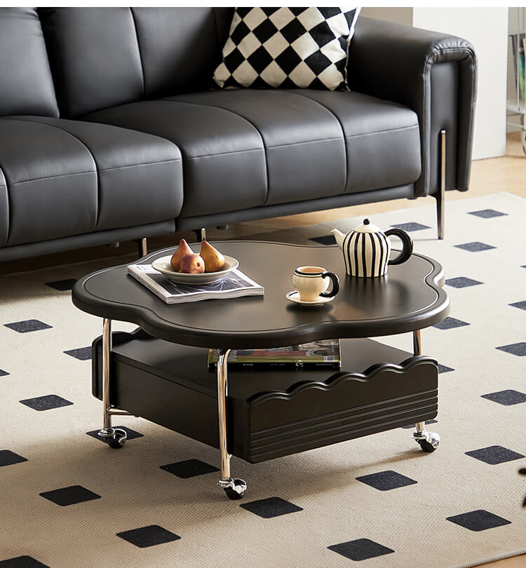הוסיפו נגיעה של מודרניות לחלל המגורים שלכם עם שולחן קפה נייד שחור בצורת ענן. בהשראת עיצוב עכשווי, פריט ייחודי זה משלב עקומות אורגניות עם פונקציונליות עירונית, הכולל גימור מט חלק או שחור מבריק (אופציונלי) וארבעה גלגלים מסתובבים לניידות קלה. הצללית הזורמת יוצרת נקודת מוקד בולטת, בעוד שמשטח השולחן החזק מציע מקום למשקאות, ספרים או עיצוב.