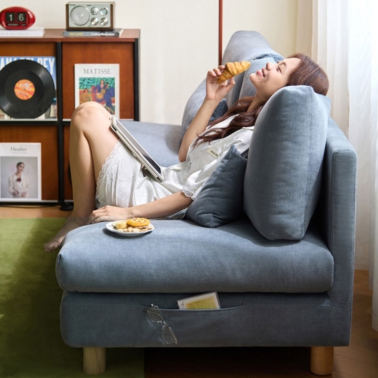 7ספת דו-מושבית רב-תכליתית בצבע כחול LINSY מבד ניטרלי BS326-A