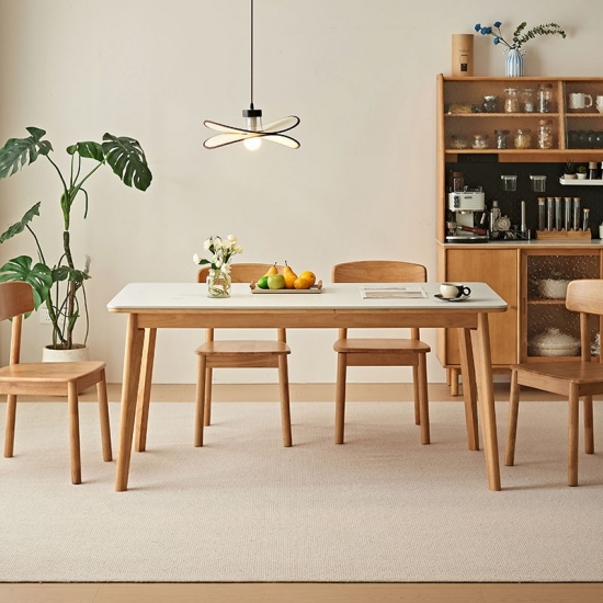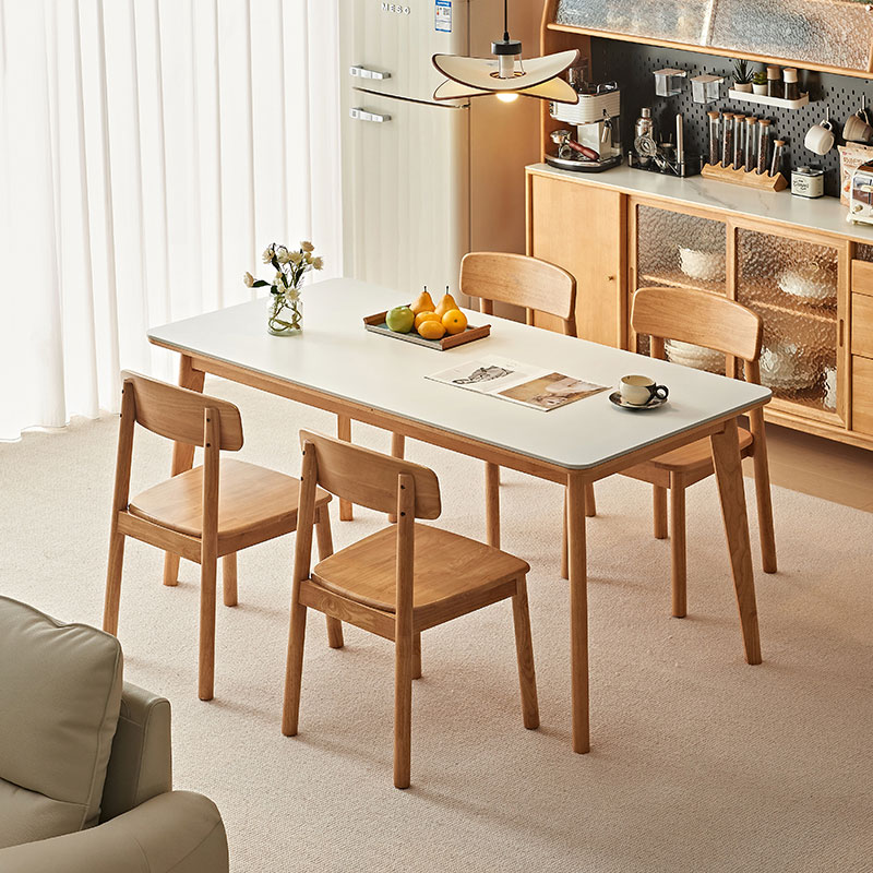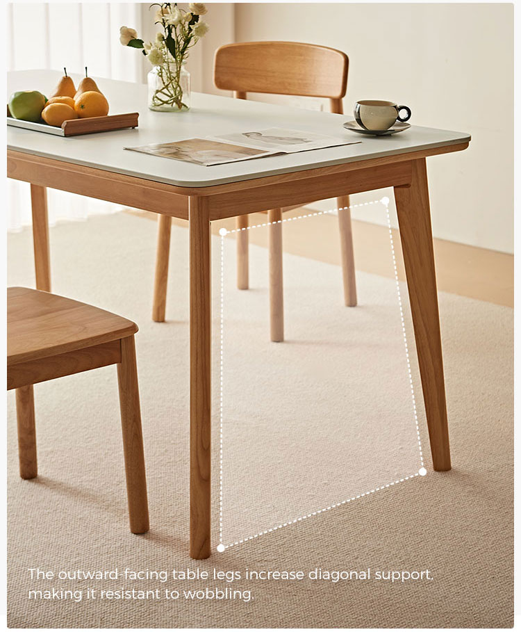 צורה ומידות: לשולחן משטח שולחן מלבני פריך, מה שהופך אותו לאידיאלי הן לארוחות יומיומיות והן לאירוח אורחים.