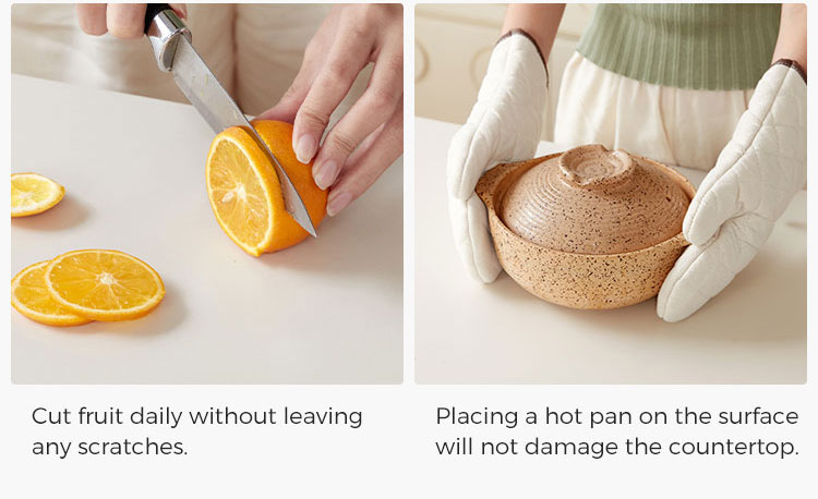משטח משטח שולחן: המאפיין המובהק שלו הוא משטח האבן המלוטשת (אבן מנופחת באש). משטח זה נוצר באמצעות טיפול מיוחד בטמפרטורה גבוהה המבליט את וריאציות הצבע הטבעיות של האבן ויוצר גימור ייחודי בעל מרקם.
