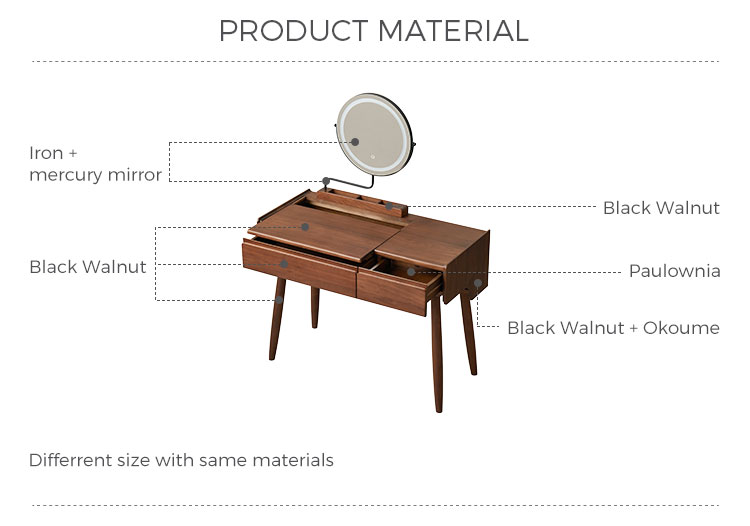 שולחן איפור ושולחן כתיבה מעץ אגוז מאמצע המאה LINSY עם מראה RQ2C-A