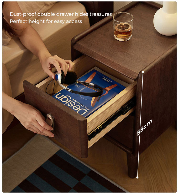 אחסון בשפע: כולל שתי מגירות החלקות לארגון מסודר של צרכי השינה, תוך הפחתת העומס.