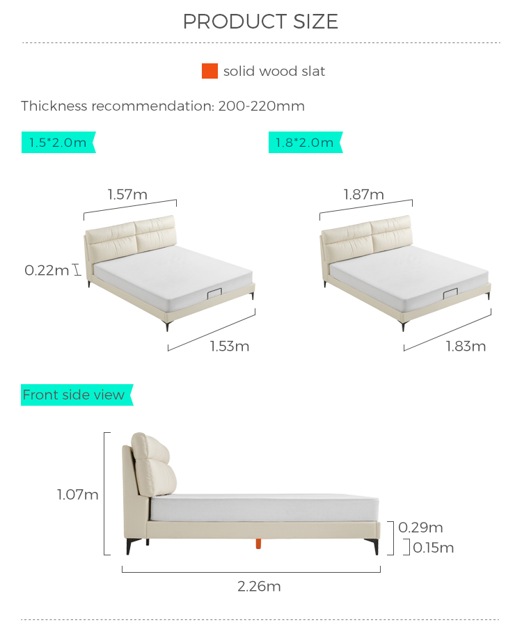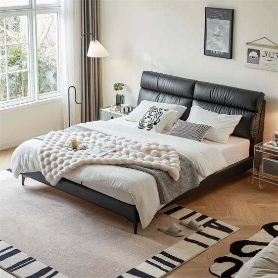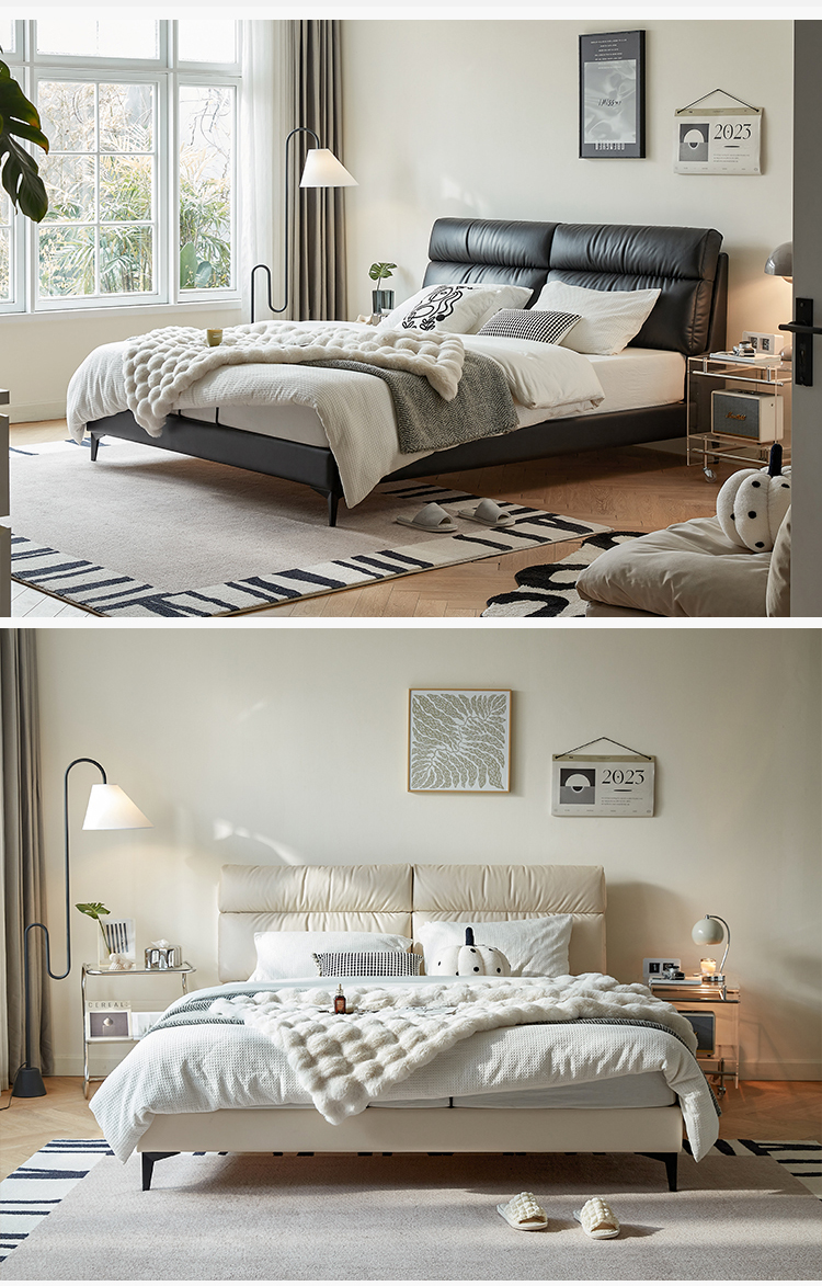 הרם את מנת הסגנון של חדר השינה שלך עם מסגרת מיטה מעץ. העיצוב הייחודי והקטיפה שלו מוסיף נופך של גחמה ויוקרה, והופך את מרחב השינה שלך למפלט מזמין המשדר נוחות. המיטה עם חתיכה שלמה של עור פרה עם דגנים עליונים, מרגישה רכה ועדינה, בעלת מרקם יותר.