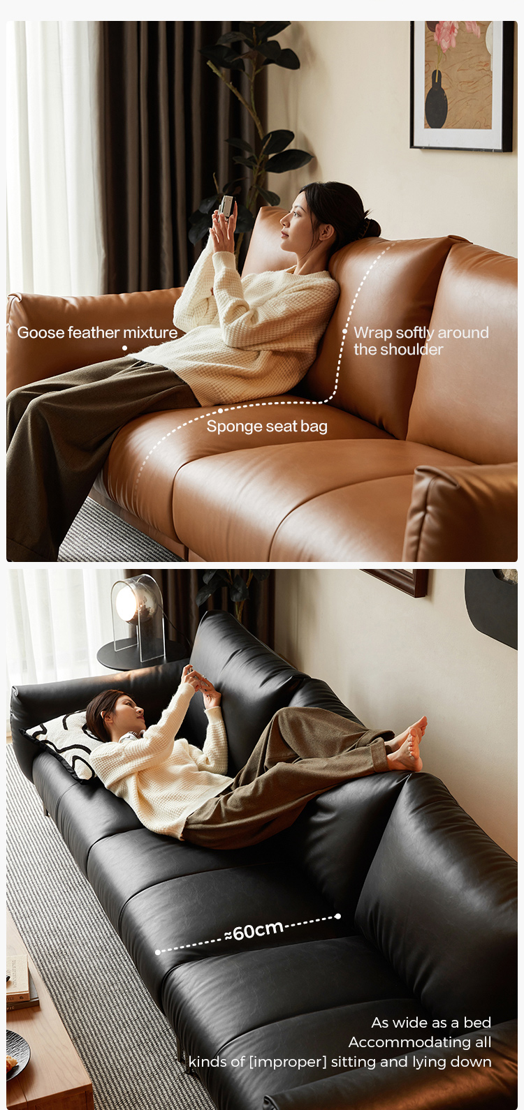 ספות העור הכתומות שלנו הופכות חללים רגילים לשיחה. מכתום שרוף (אווירת מורשת) ועד מנדרינה (פופ מודרני) עם עור איכותי. הן גדולות מספיק כדי שתוכלו לשבת ולהישען בסלון.