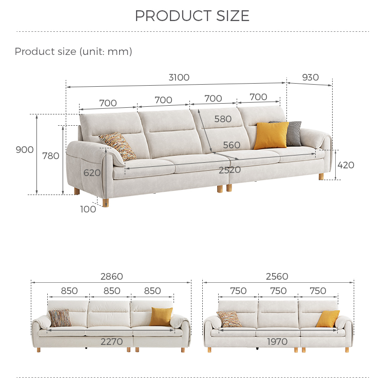7ספה גדולה בצבע לבן מבד בעיצוב מודרני של LINSY BS183-B