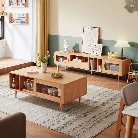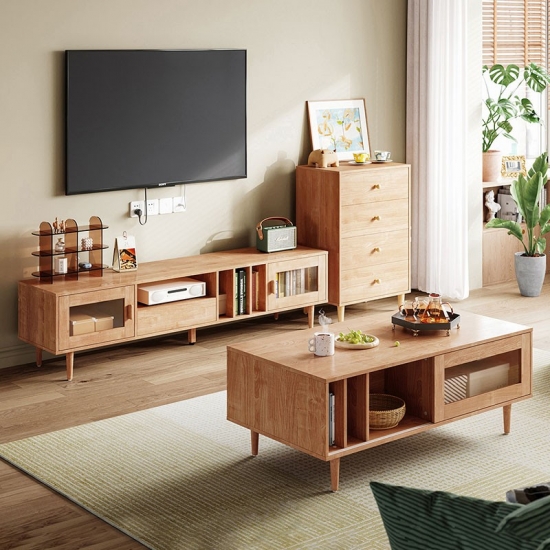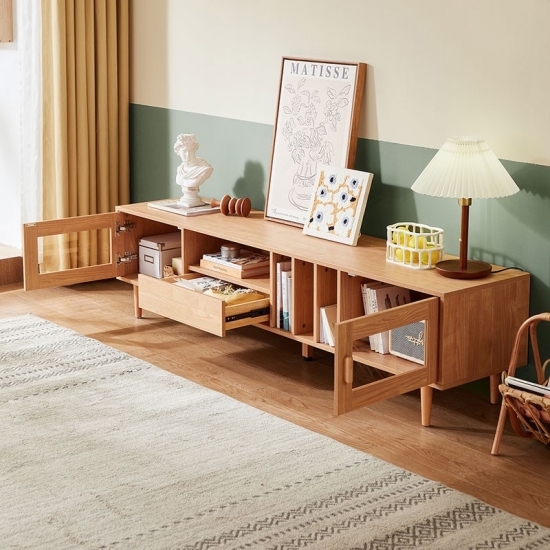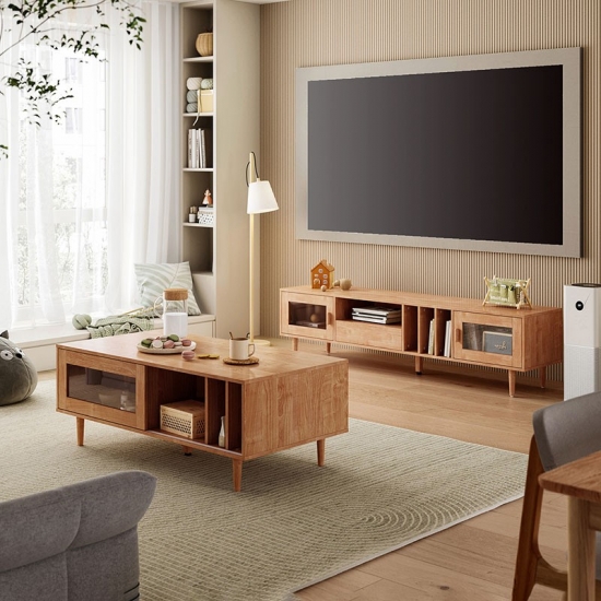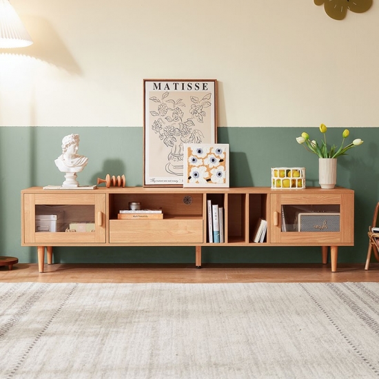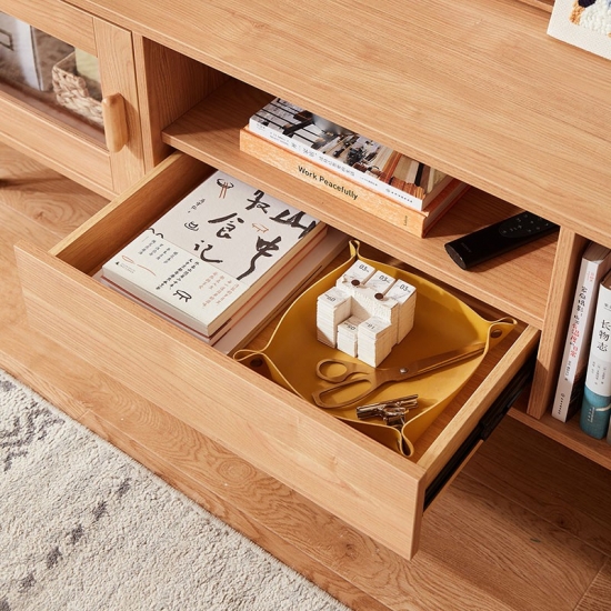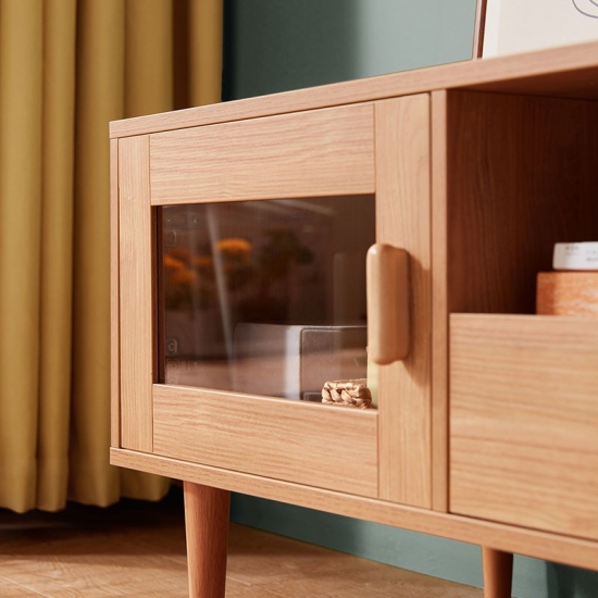 מרכז בידור זה עשוי מעץ מלא בשילוב mdf, בעל קשיחות ועמידות טובה, תוך הוספת מגע של אלגנטיות כפרית לחדר. התוספת של אלמנטים אופנתיים מביאה אסתטיקה מודרנית לחדר השינה או לסלון שלך.