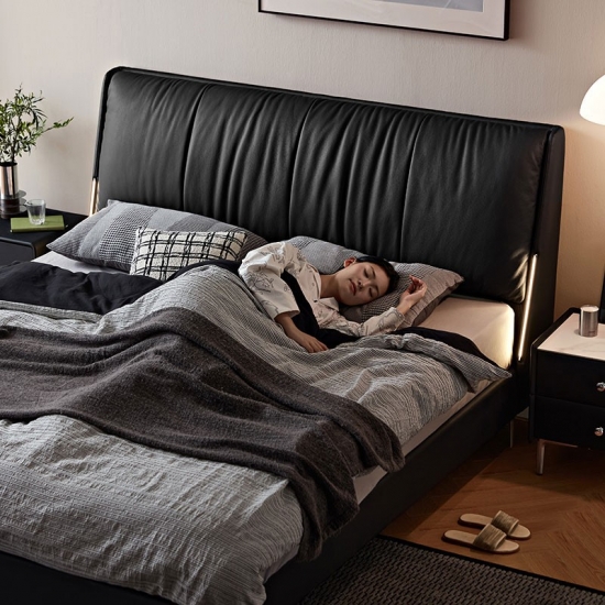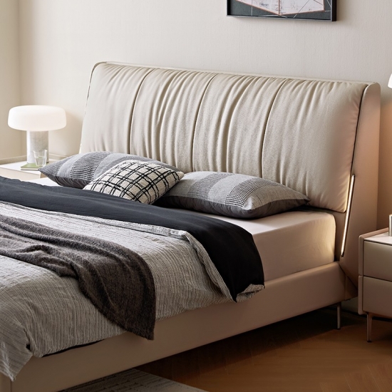 ראש מיטה רך ועשוי מעור מלא מציע נוחות רכה לקריאה או מנוחה, עם תפרים מותאמים אישית לגימור חלק ואיכותי.