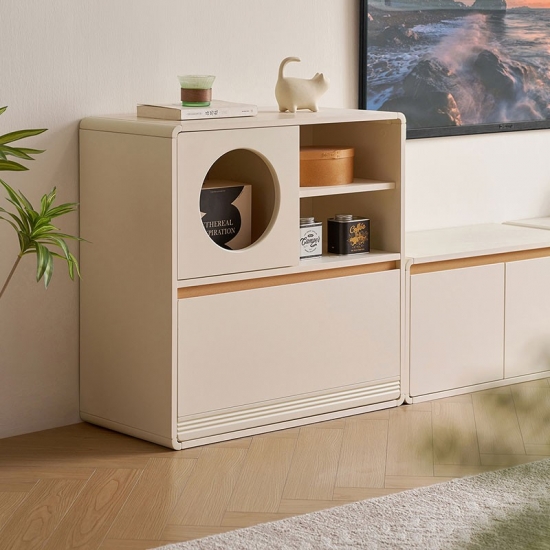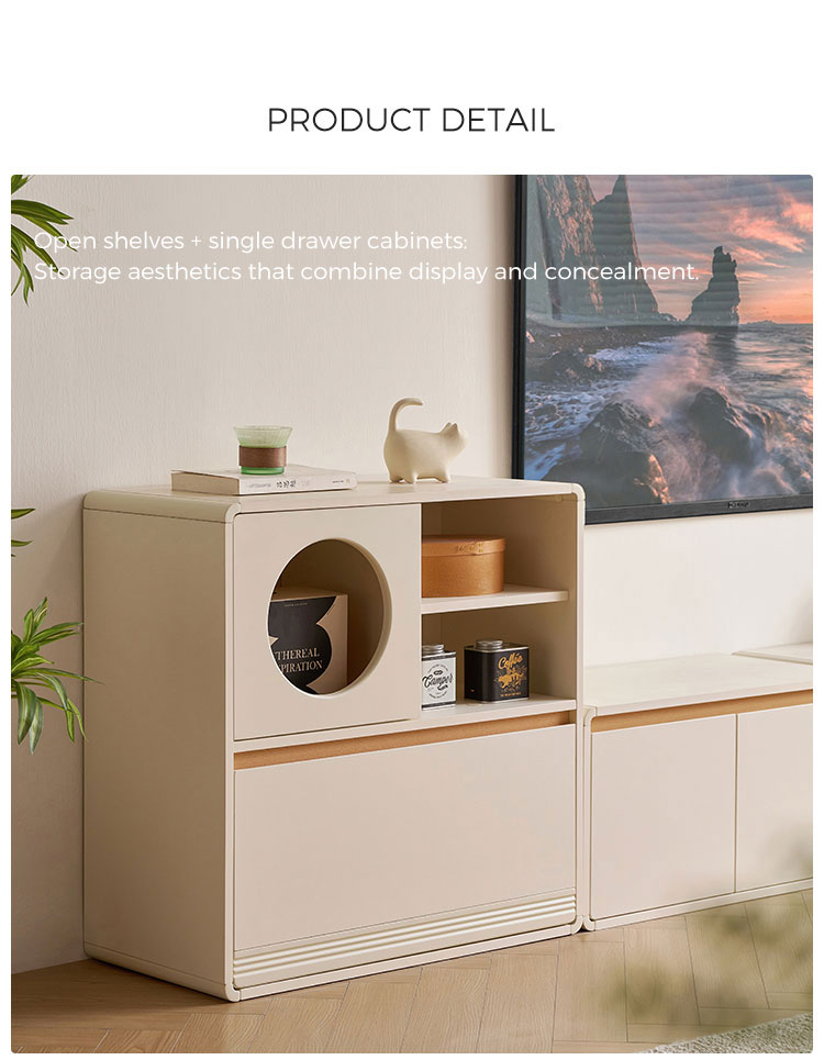 עיצוב פונקציונלי: הוא עוצב לגמישות, ומספק שפע של אחסון נסתר מאחורי דלתות ומגירות המותאמות בצורה חלקה.