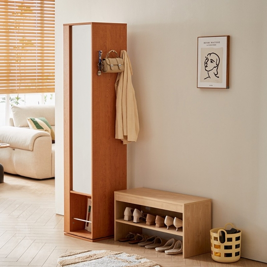 שילוב חלק של פונקציונליות ותחכום, ארון המראה הרצפה מעץ מלא שלנו מציע השתקפות לאורך מלא ואחסון דיסקרטי בפריט אחד אלגנטי. ארון המראה העומד בפני עצמו, העשוי מעץ מלא ממקור בר-קיימא, משדרג כל חלל - חדר שינה, כניסה או אזור הלבשה - עם גרגר העץ הטבעי והחם שלו ועיצובו הנקי.