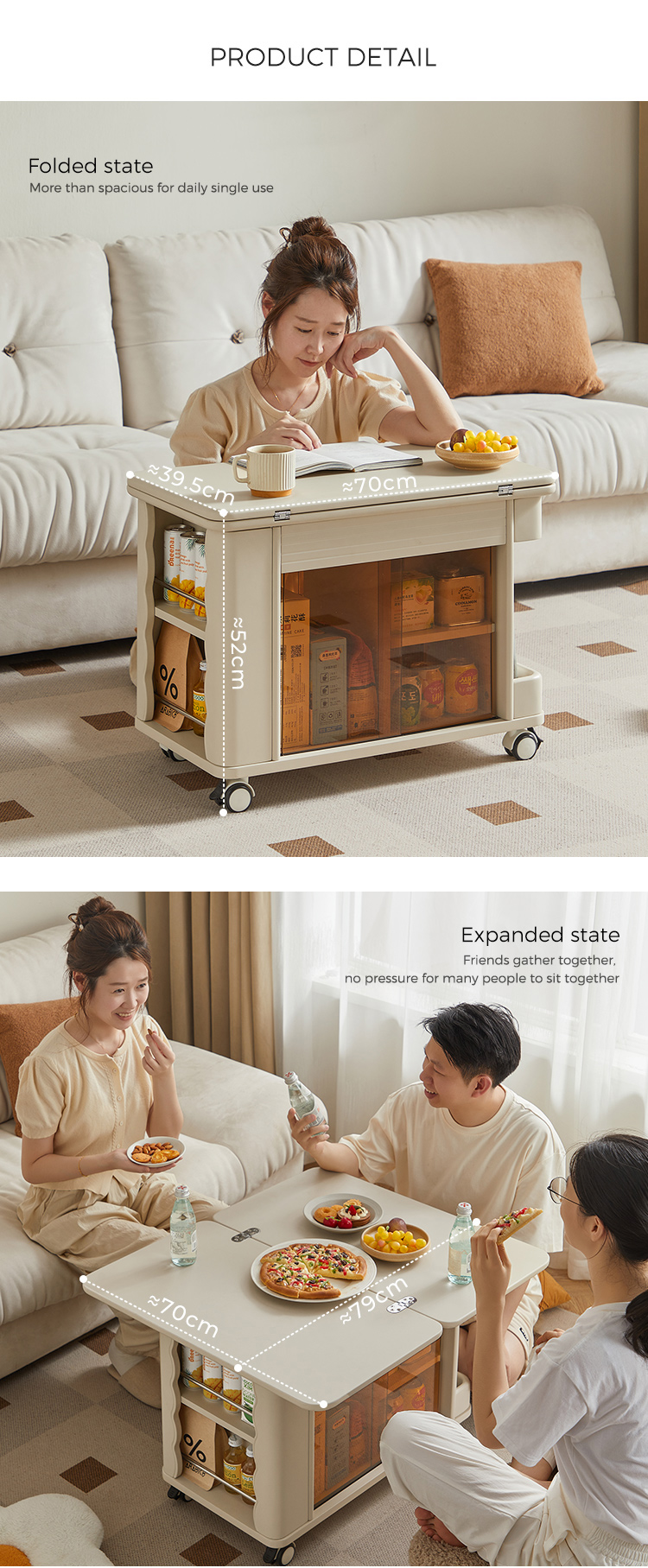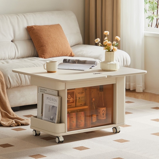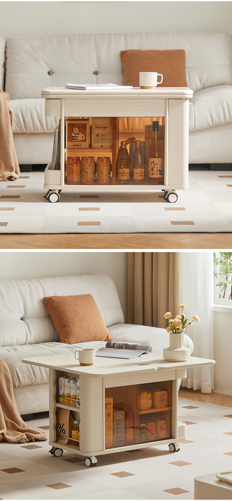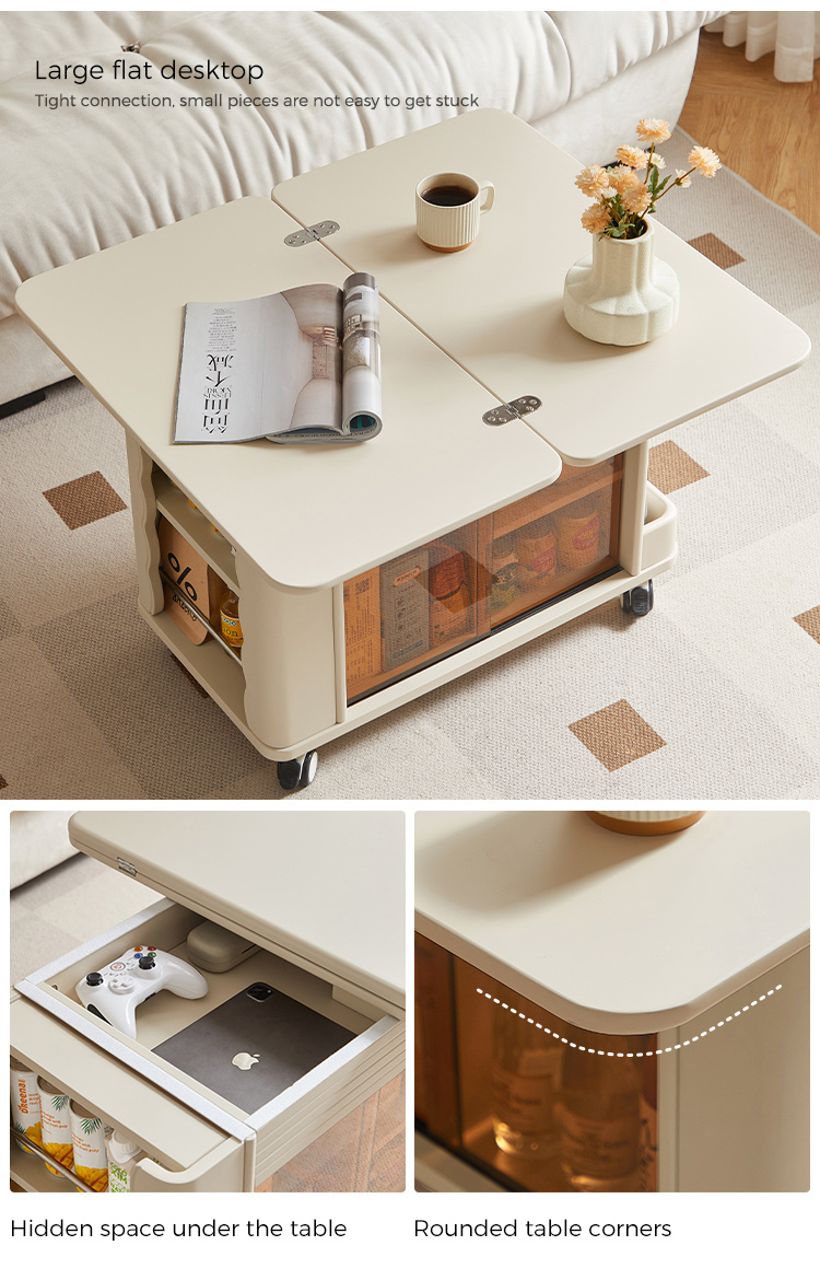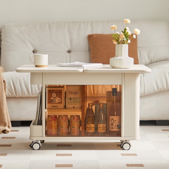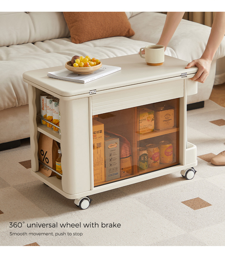 7סגנון מודרני שולחן זזת שולחן בצבע בז 'שולחן קפה עם גלגלים LH202J1-A