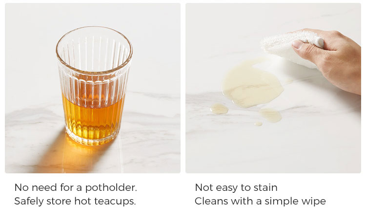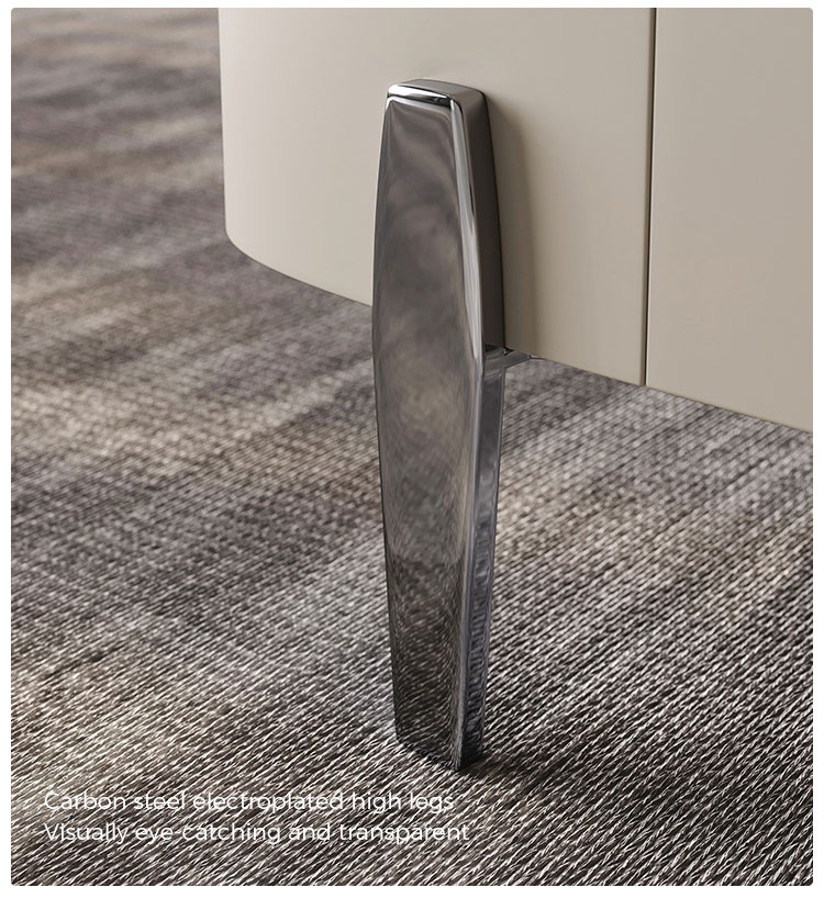 בסיס בסגנון תעשייתי-שיק: רגלי הנירוסטה החלקלקות מספקות יציבות יוצאת דופן וקצה מודרני ומחזיר אור. הקווים הנקיים שלהן משלימים את המורכבות הטבעית של משטח השולחן מבלי להתחרות על תשומת הלב.