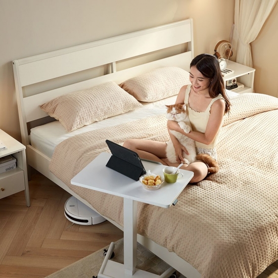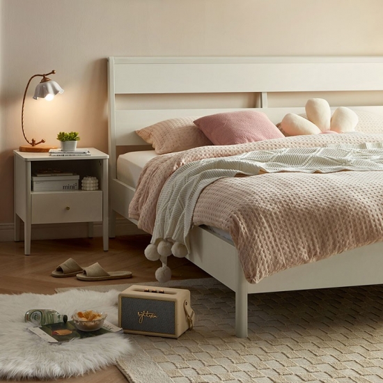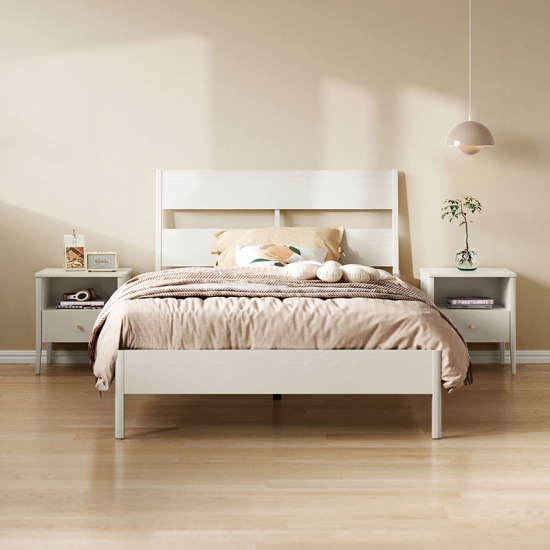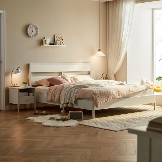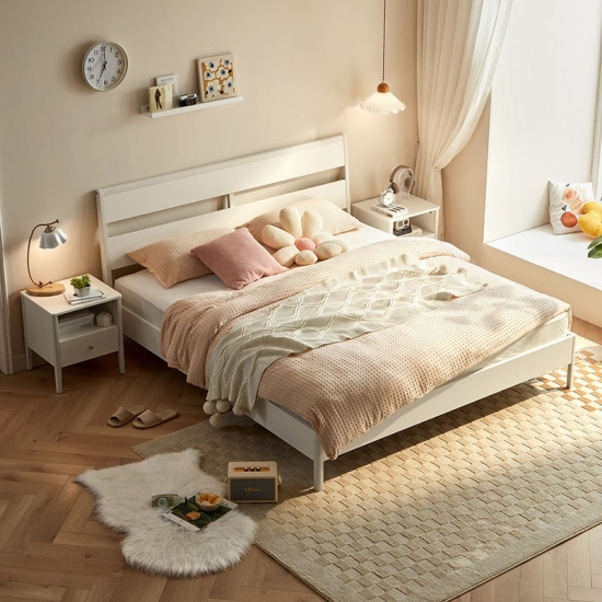 7LINSY ריהוט חדר שינה בסגנון נורדי צבע לבן מיטת קינג סייז עם עץ OU1A-B