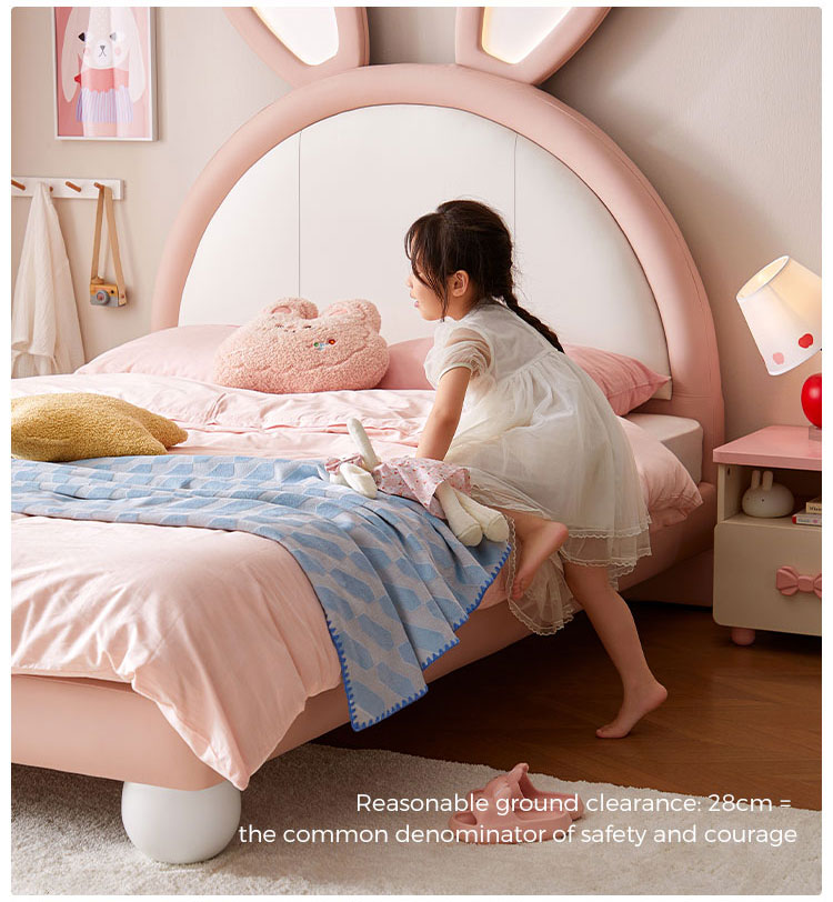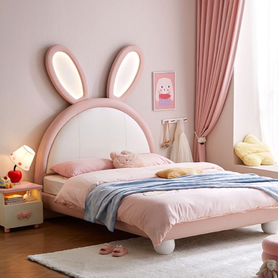 7מיטת ארנב ורודה של LINSY עם אוזניים זוהרות מתכווננות ועור PC131-A