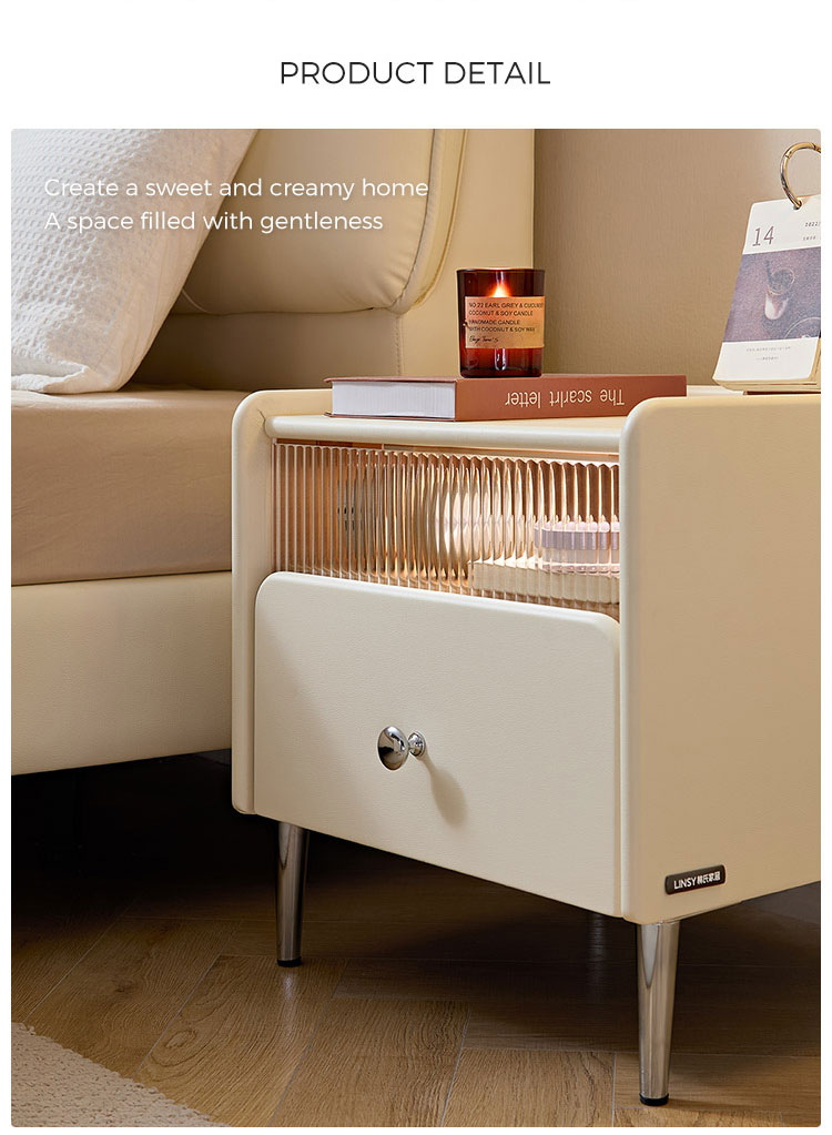 ריהוט לחדר שינה LINSY עם מגירה, בצבע לבן גבינה, דגם TD139-A |