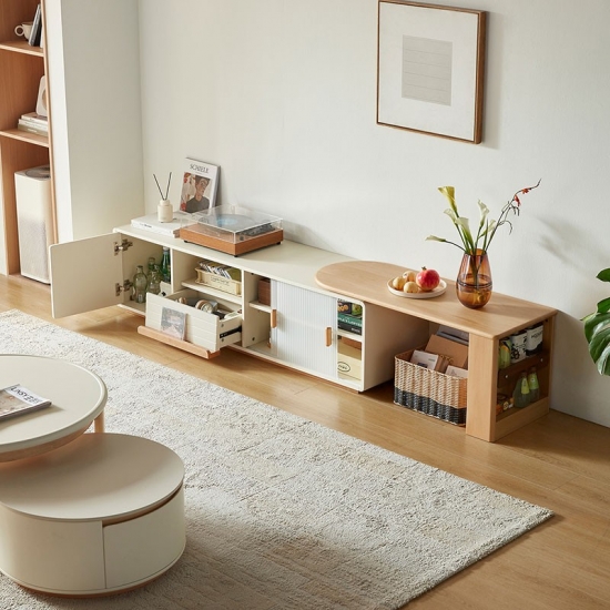 02. אחסון בשפע – מדפים וארונות למכשירי מדיה, קונסולות ועוד.