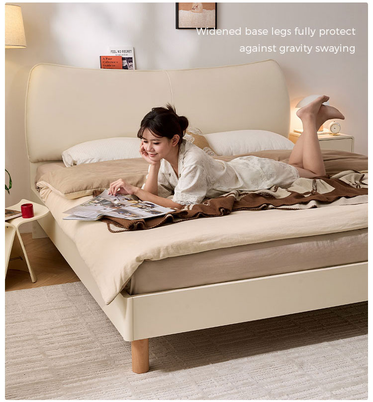 ראש המיטה המרופד בעדינות, שעוצב לנוחות וסגנון, מציע מקום מושלם להירגע בו, בעוד שהגימור הלבן הנקי והריפוד המותאם אישית מעניקים תחושה בהירה ואוורירית לכל חדר. מיטה זו, נצחית ורב-תכליתית, משלבת פשטות מודרנית עם נוחות יומיומית - ויוצרת מקלט שינה שליו ומזמין.
