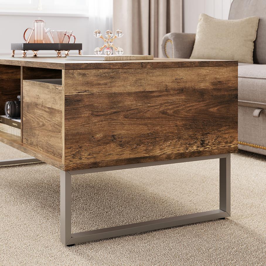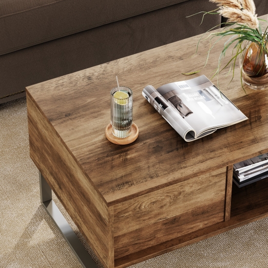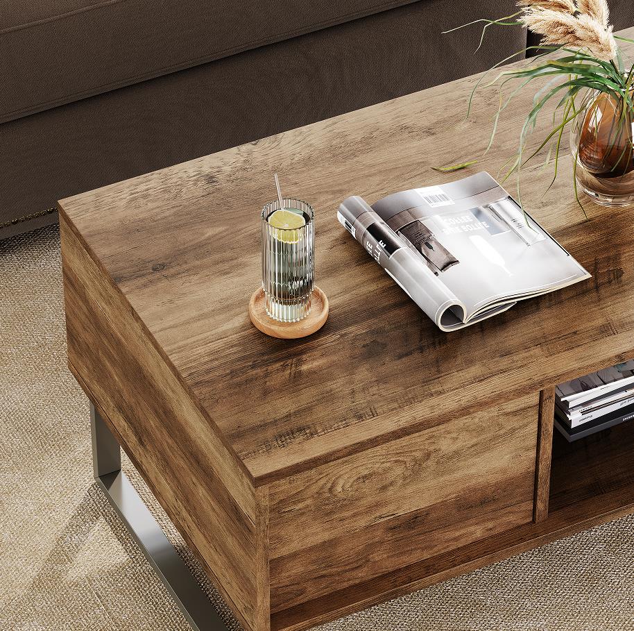 שולחן קפה מלבני זה מציע מראה קלאסי ומשתלב היטב עם רוב הספות הסטנדרטיות. צבע העץ העשיר ומסגרת הפלדה הכהה משלימים זה את זה היטב, מסגרת הפלדה עם חלק עליון עץ קשיח כפרי באפקט מצוקה יוצרת חלק מרכזי מסוגנן לסלון שלך.