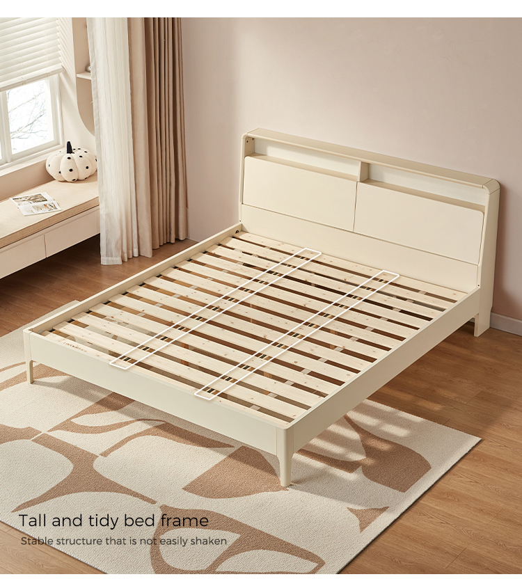 מסגרת המיטה בגודל מלא בעלת עיצוב רגליים מוסתרות ייחודיות, המסגרת הראשית המחוזקת נתמכת על ידי רגלי המיטה הפנימית, תוך שהיא מספקת תמיכה יציבה מספקת, היא גם גורמת למסגרת המיטה של LED להיראות כאילו היא צפה באוויר, שמביא חוויה חזותית ייחודית ורומן, ומוסיפה אישיות ותחושת טכנולוגיה מודרנית לחדר השינה שלך.