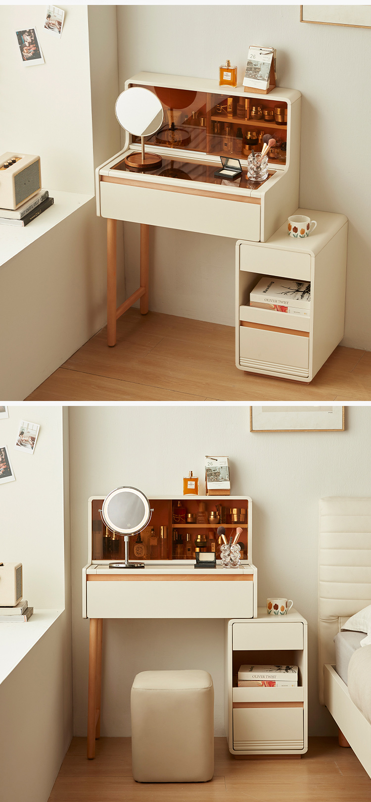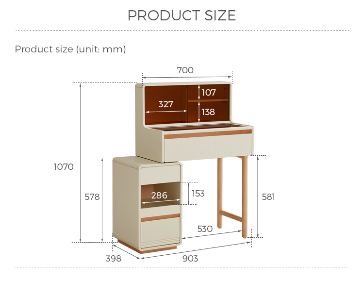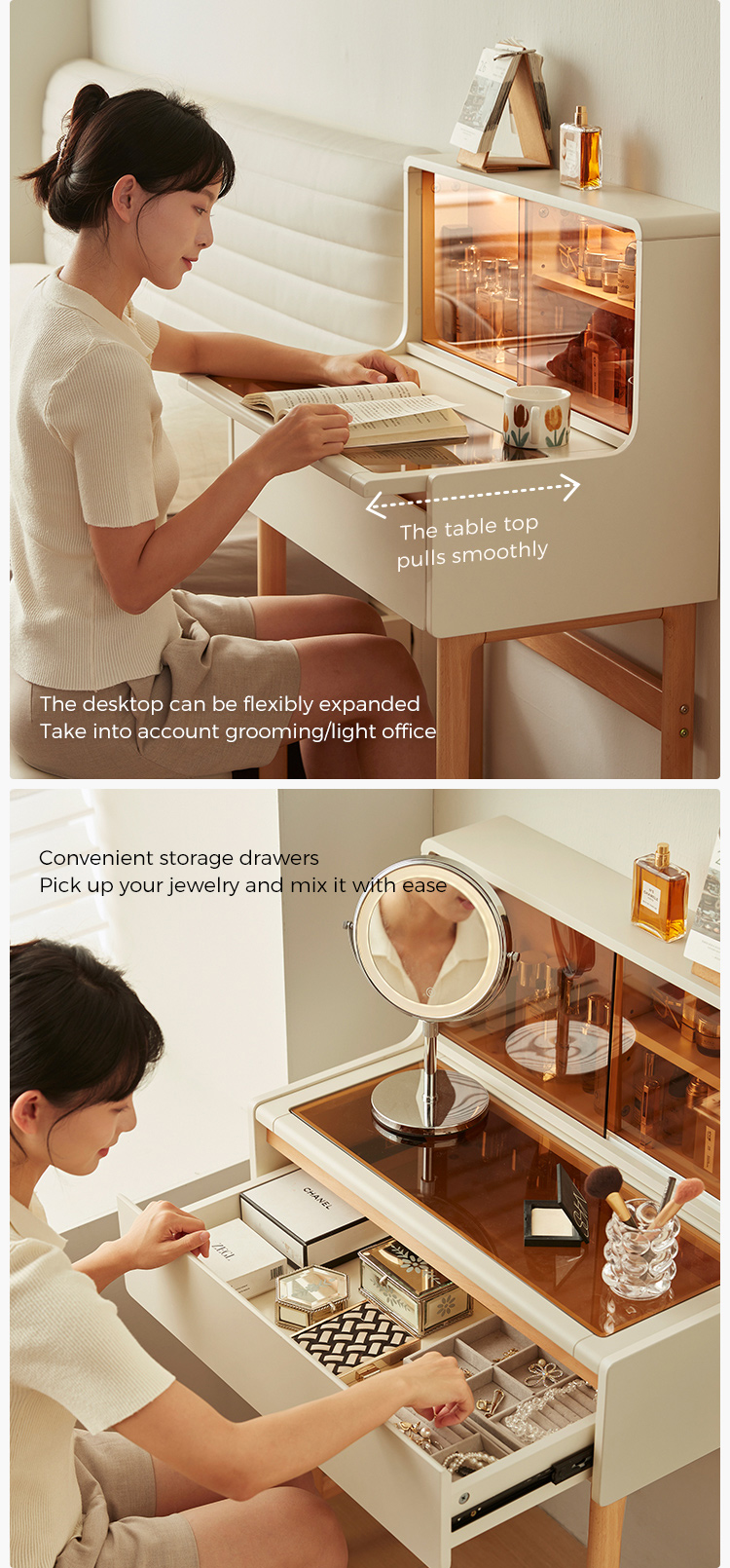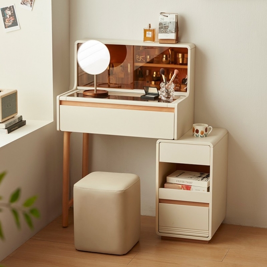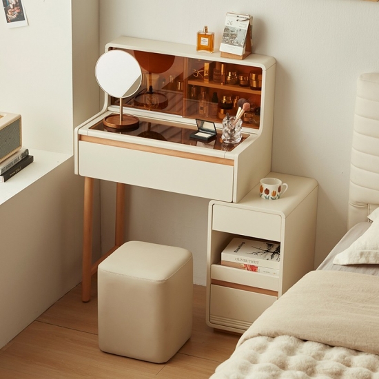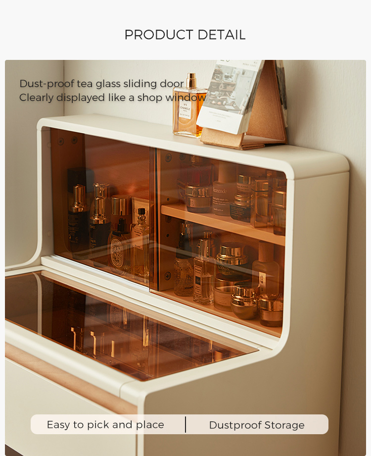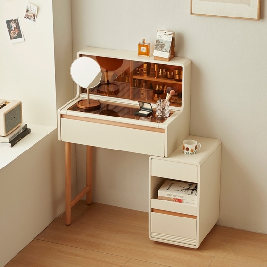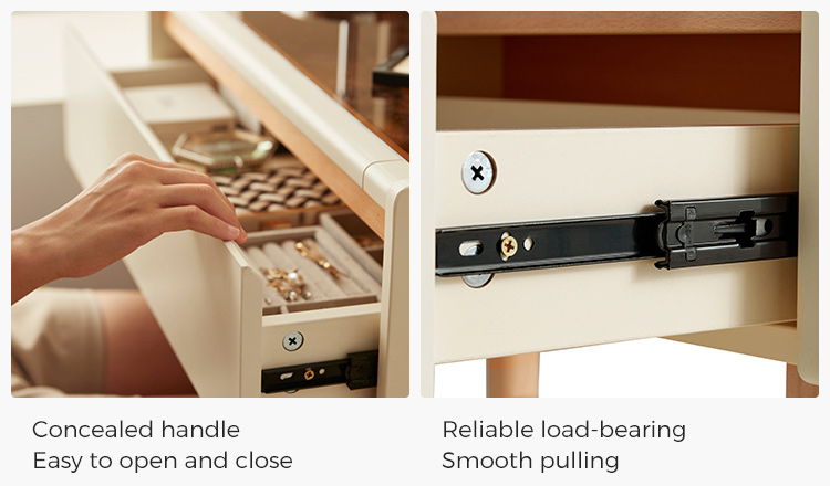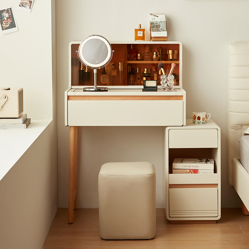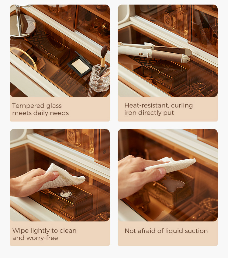 * אחסון בשפע - מגירות ותאים מרווחים שומרים על קוסמטיקה, תכשיטים וחפצים חיוניים מאורגנים בצורה מסודרת.