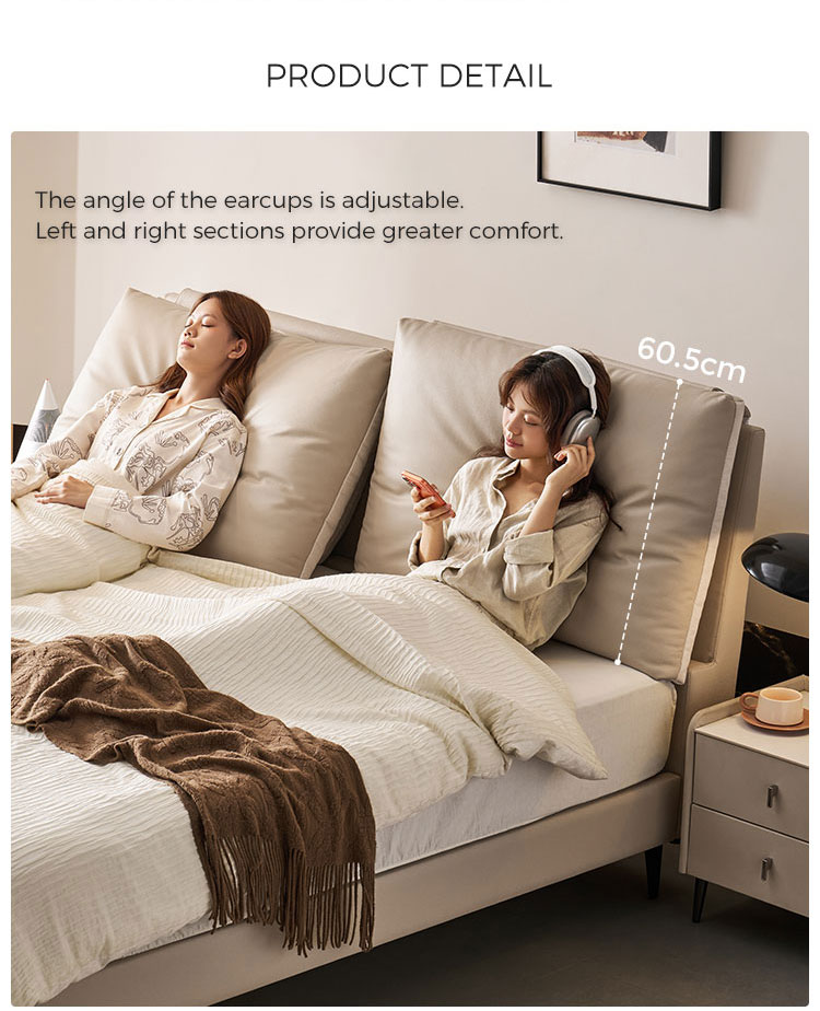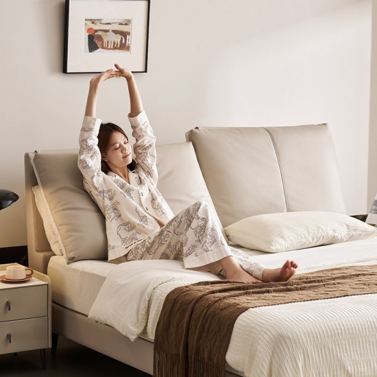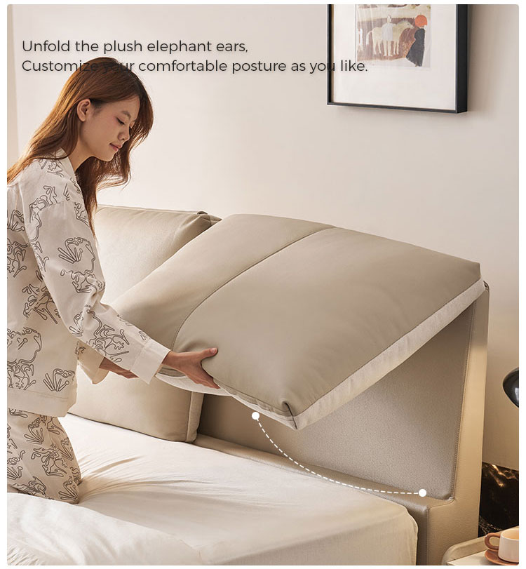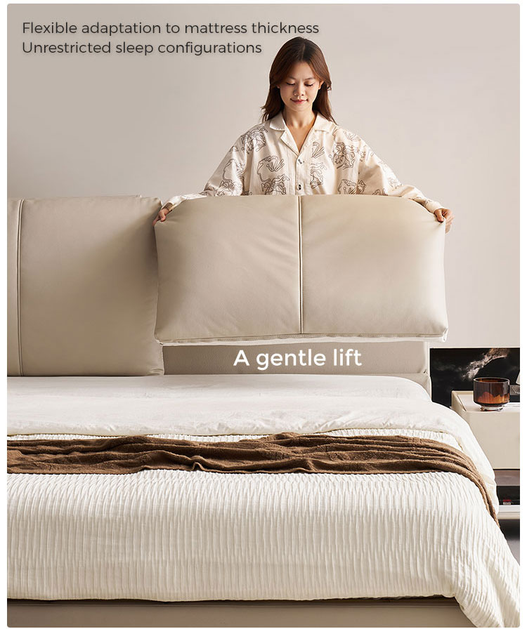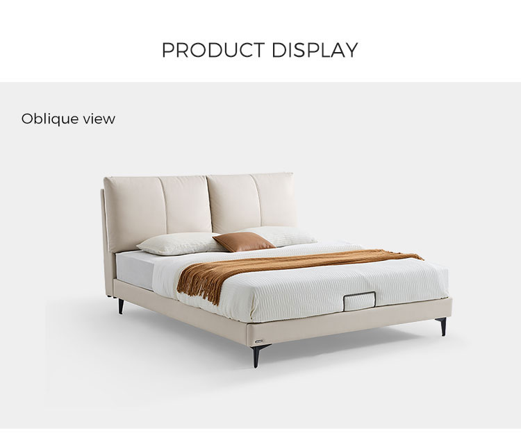 7מיטת עץ מעור בצבע בז' מודרנית אלגנטית PC589-A