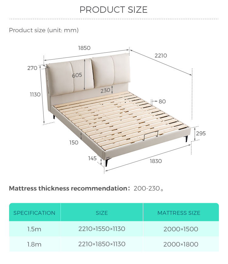 מיטה מרופדת מודרנית עם מסגרת עור ועץ מלא PC591-Aהַבָּא :