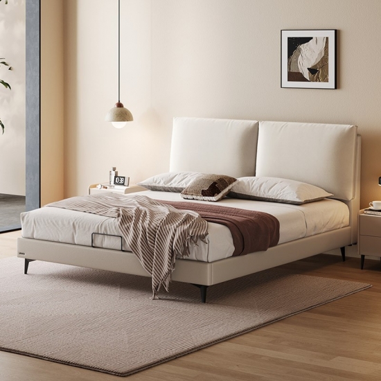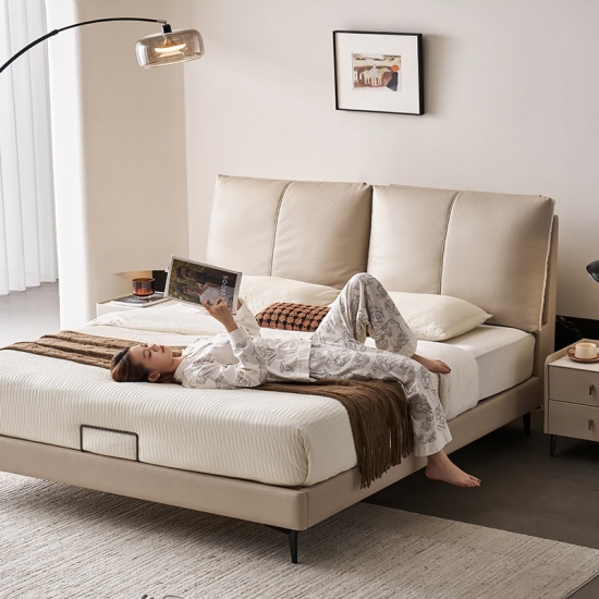 מיטת עץ מעור בצבע בז' מודרנית אלגנטית PC589-A |