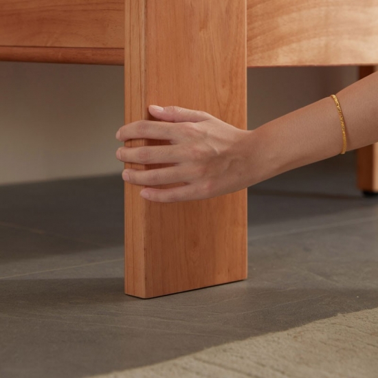 העץ נותר טבעי, מוכתם או צבוע כדי להתאים לסגנונות פנים שונים גימורים נפוצים כוללים מראה מט, מבריק או במצוקה