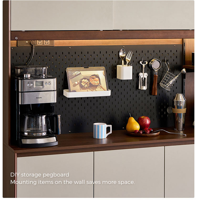 עיצוב מגירות מרובות + לוח יתדות – משלב מגירות החלקות עם לוחות יתדות מתכווננים לארגון הניתן להתאמה אישית.