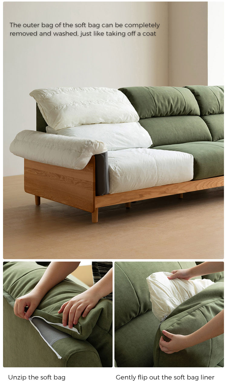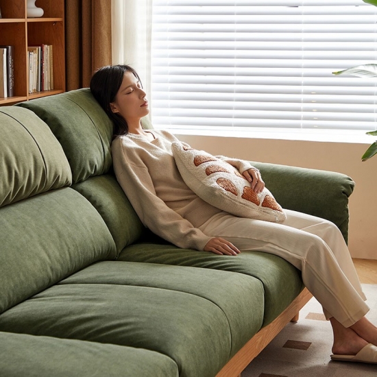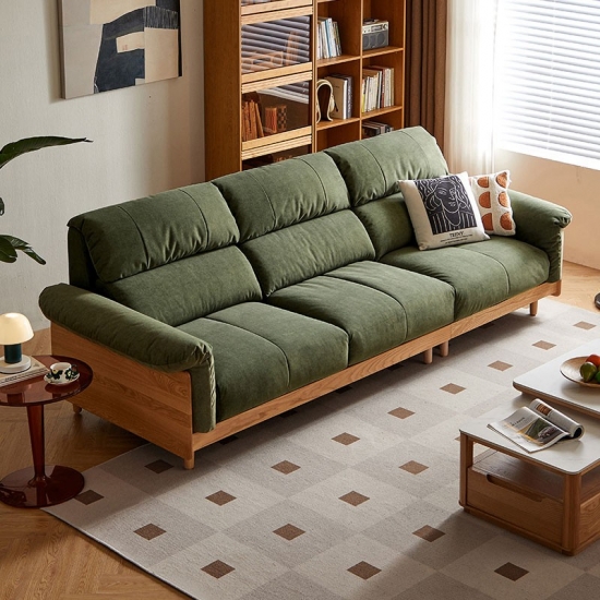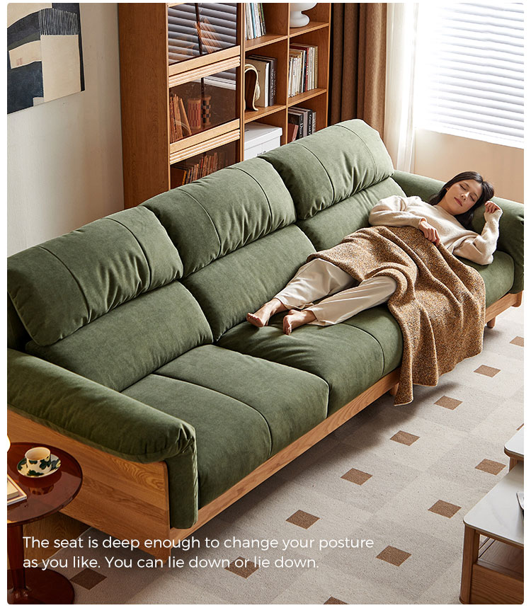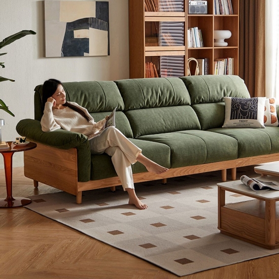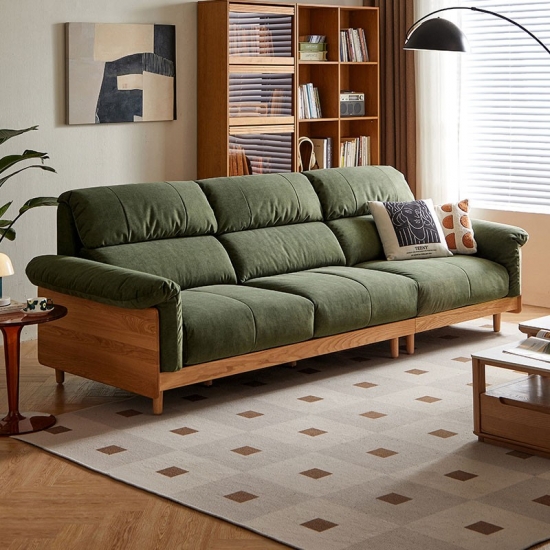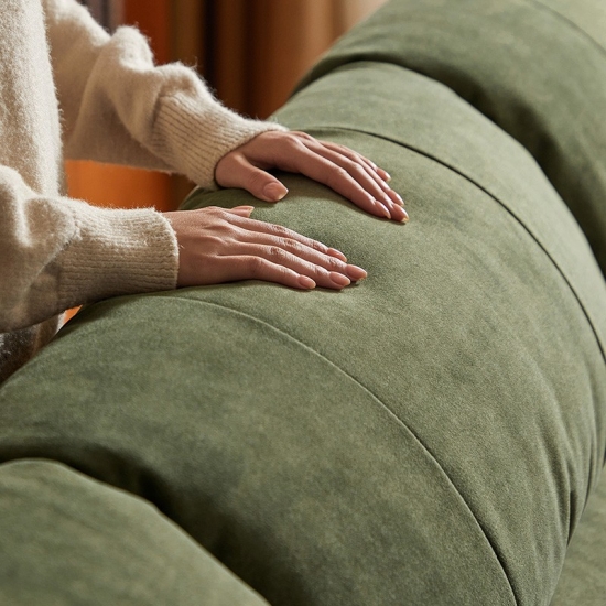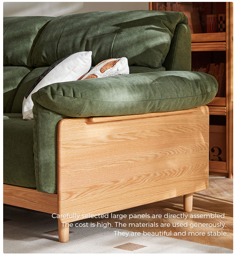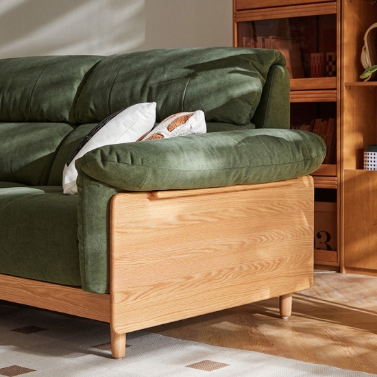 ספה זו, העשויה בעבודת יד מעץ מילה מלא ממקור בר-קיימא, משלבת חמימות אורגנית עם עיצוב עכשווי. מרופדת בבד ירוק אזוב יוקרתי, היא יוצרת נקודת מוקד שלווה לחללי מגורים ידידותיים לסביבה.