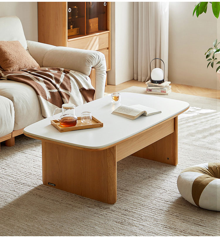 7שולחן קפה מלבני מודרני מעץ מלא ומשטח שיש UB1L-A