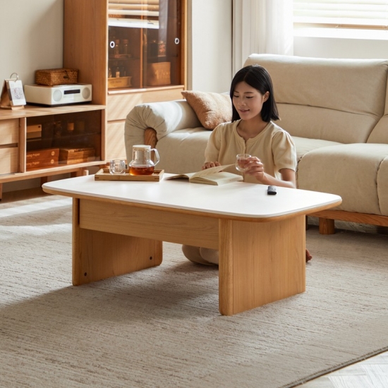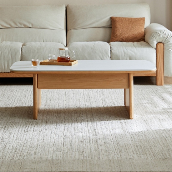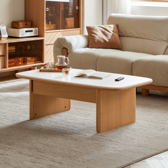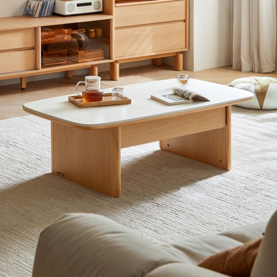 שולחן קפה מלבני מודרני מעץ מלא ומשטח שיש UB1L-A |