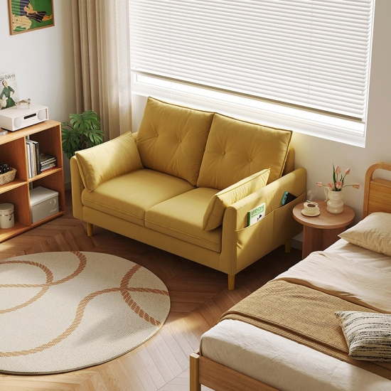 אנא התבוננו בספה הדו-מושבית הזו, שהיא אידיאלית לדירות, סטודיו או כל אזור מגורים נעים. BS806 - ספה דו-מושבית קומפקטית נועדה למקסם את הסגנון והנוחות מבלי להתפשר על האיכות. היא מעוצבת תוך תשומת לב לפרטים, וכוללת מסגרת עץ חזקה לעמידות לאורך זמן, הנתמכת על ידי רגלי עץ מלא אלגנטיות המספקות נגיעה של מראה ויציבות נצחיים. הצבע החם תואם לעיצובים שונים.