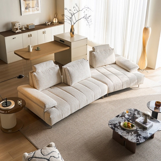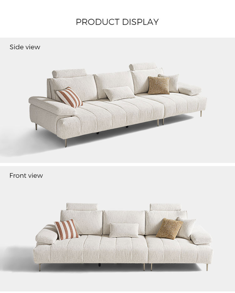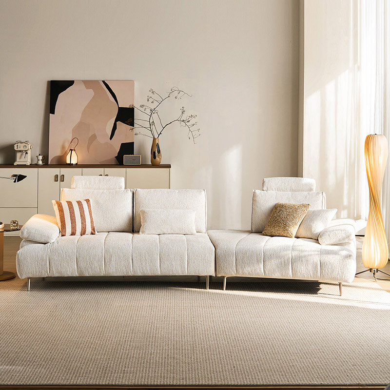 ספה לבנה מינימליסטית מודרנית זו משלבת בצורה מושלמת אסתטיקה אוונגרדית עם פונקציונליות ארגונומית. הספה עשויה מבד ניילון בעל ביצועים גבוהים, ומציעה מגע ידידותי לעור לצד עמידות יוצאת דופן בפני שחיקה ותכונות קלות תחזוקה. המאפיין הבולט שלה - מערכת משענות ראש מתכווננת רב-שלבית - מאפשרת למשתמשים להחליף תנוחות בחופשיות בהתאם להרגלי הישיבה שלהם, ומספקת תמיכה מקיפה מעמוד השדרה ועד לצוואר.