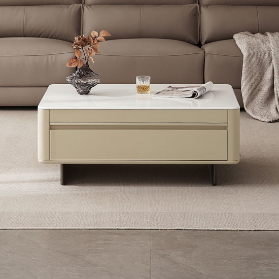 שם המוצר | אבן שולחן קפה מרובעת לבנה מודרנית עם מגירות VK2L-A |