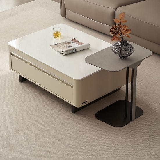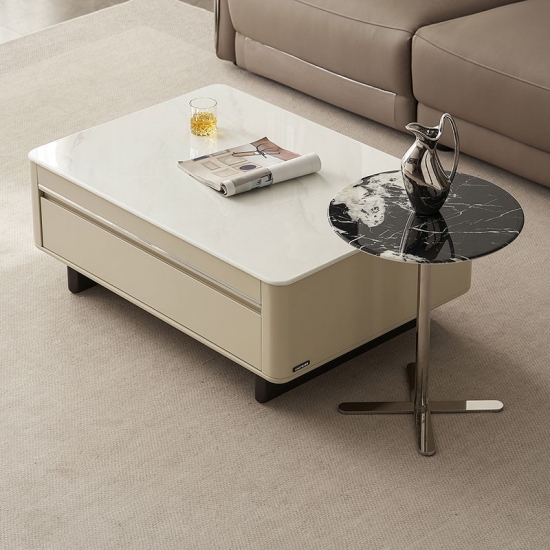 7אבן שולחן קפה מרובעת לבנה מודרנית עם מגירות VK2L-A