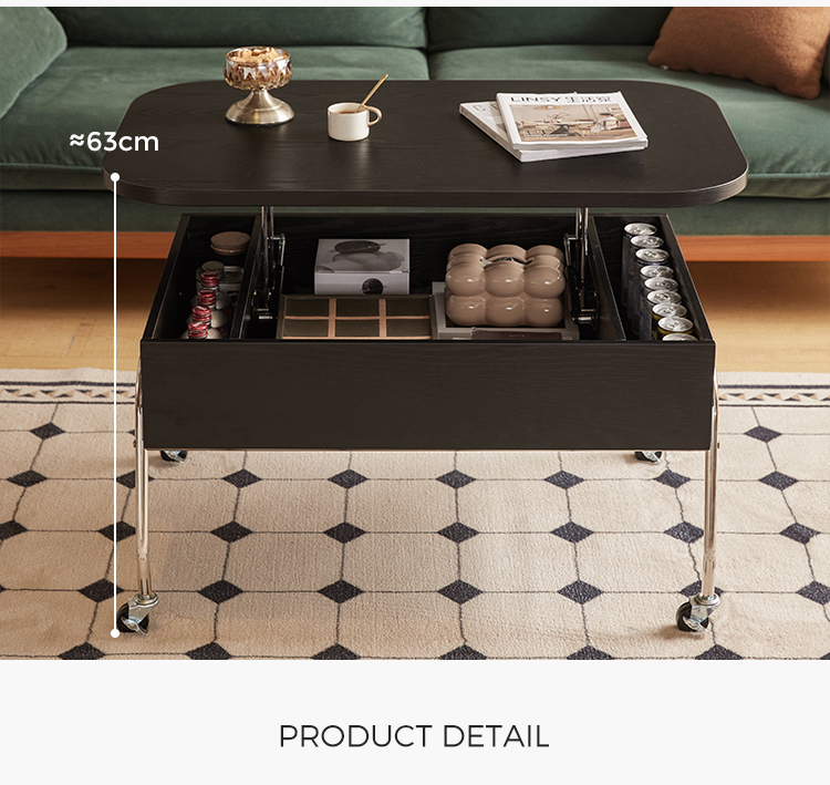 *פונקציונליות: מנגנון ההרמה הוא חלק ועמיד, ומאפשר התאמה קלה בין שולחן קפה נמוך למשטח מוגבה לאוכל או עבודה