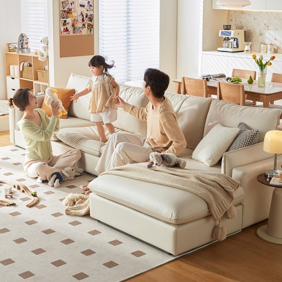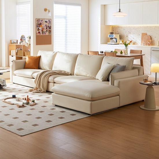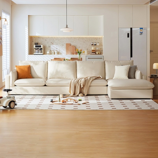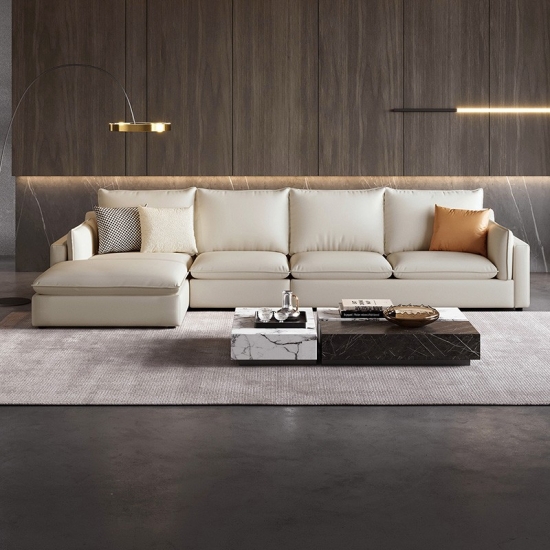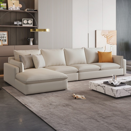 7ספת עור בסגנון נורדי בצבע בז' בצורת L BS290-A