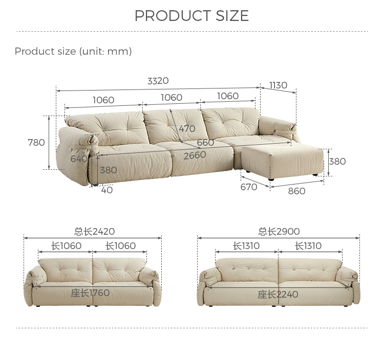 ספה גדולה של צבע חול חם לסלון PS268-Aהַבָּא :