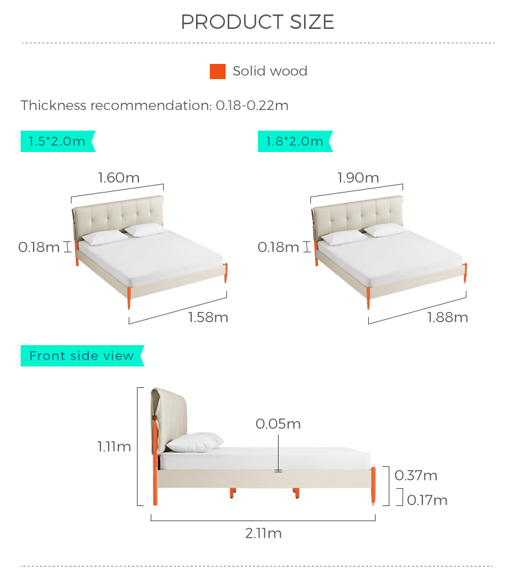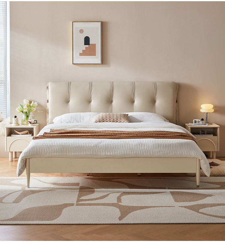 7עיצוב רך צ'סטרפילד ראש מיטה לבנה בצבע חדר שינה מיטה זוגית NU7A-A1